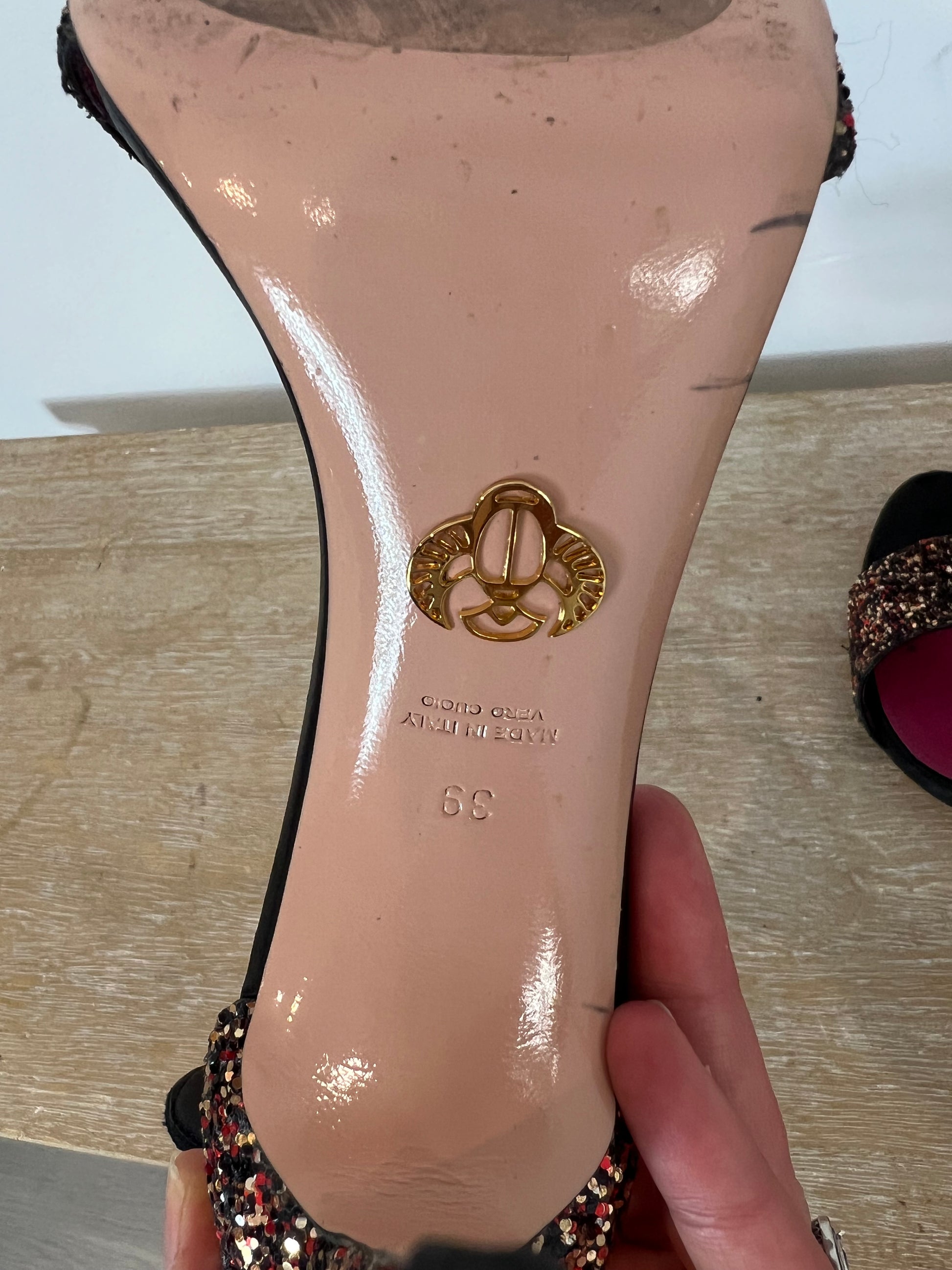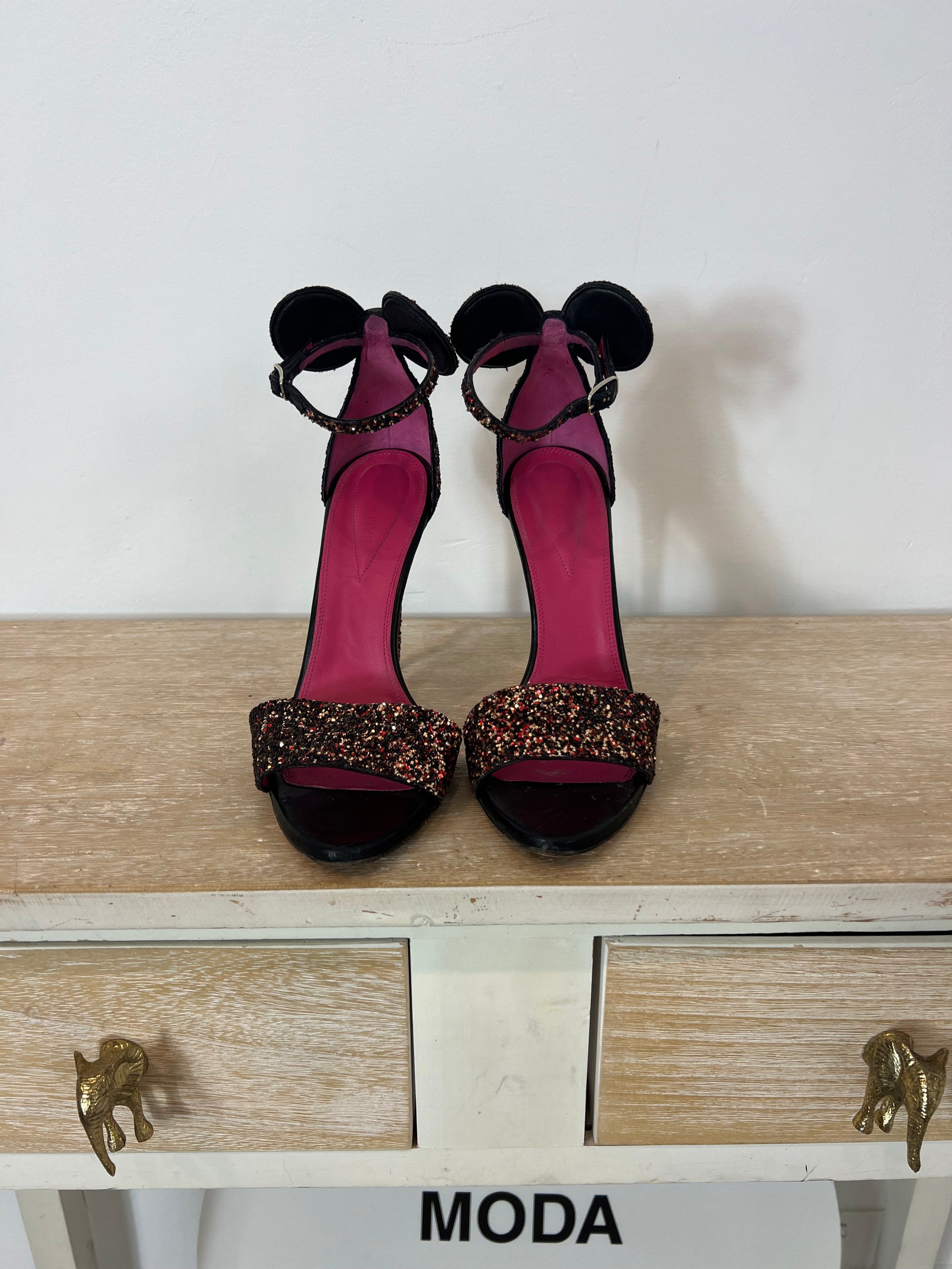 Sandalia purpurina colección limitada Minnie Shoes. Tacón 11cm . Tara: en la tira que va al tobillo tiene la piel un poco pelada (casi imperceptible)