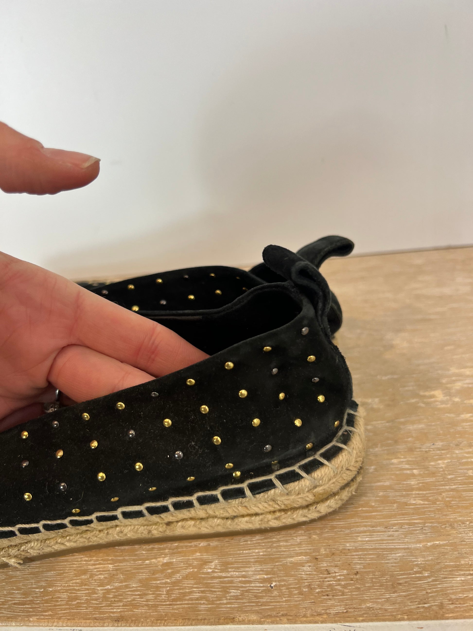 Alpargatas negras con tachuelas doradas