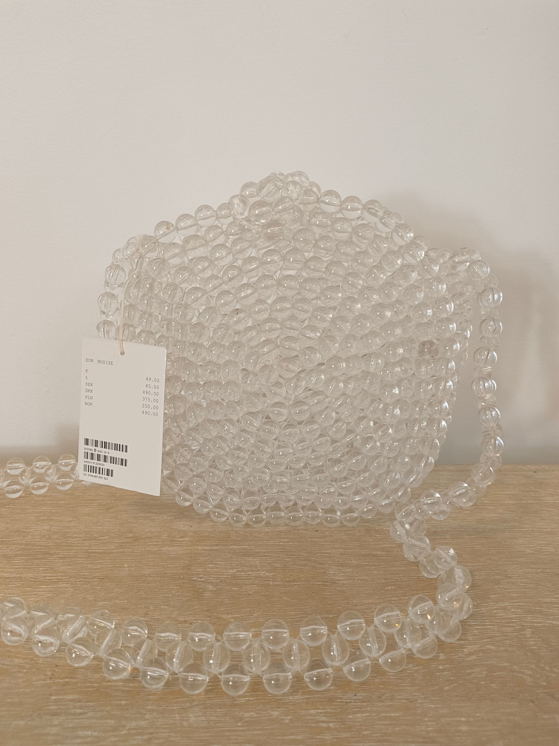 NUEVO CON ETIQUETA. Bolso estilo bandolera de abalorios transparente.