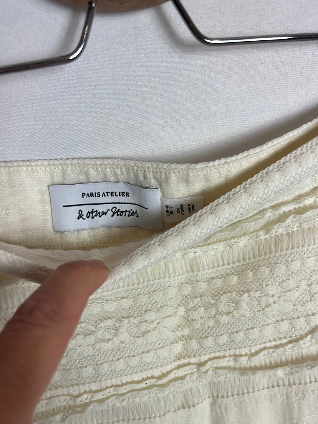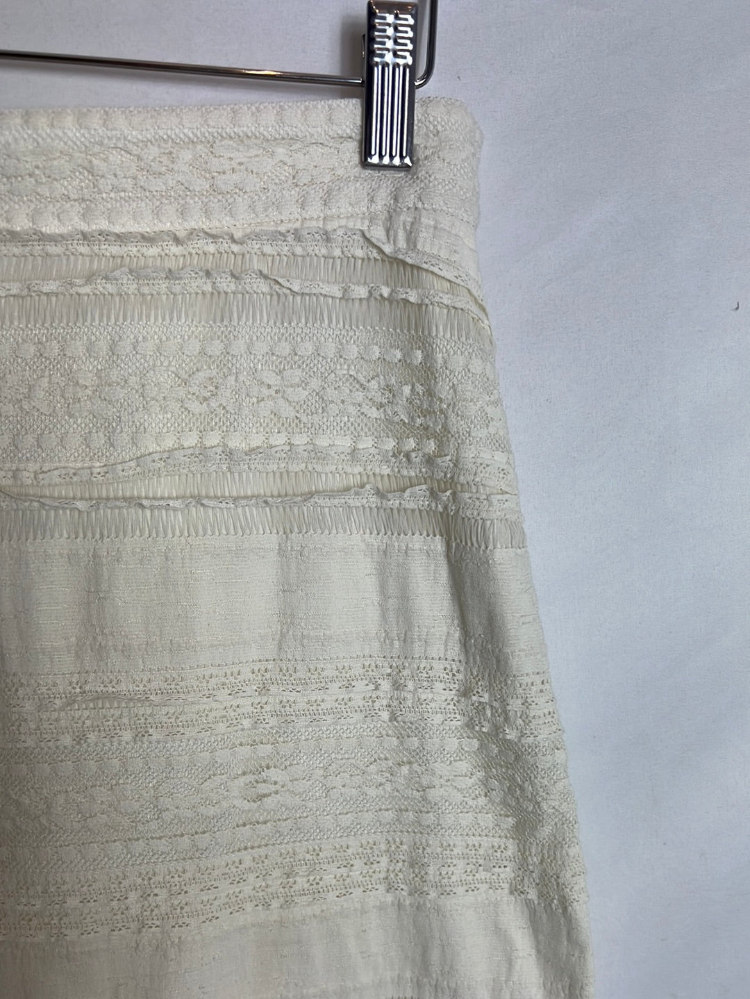 Falda color crudo encajes no elástica Cintura 37cm, largo 48cm, cadera 50cm