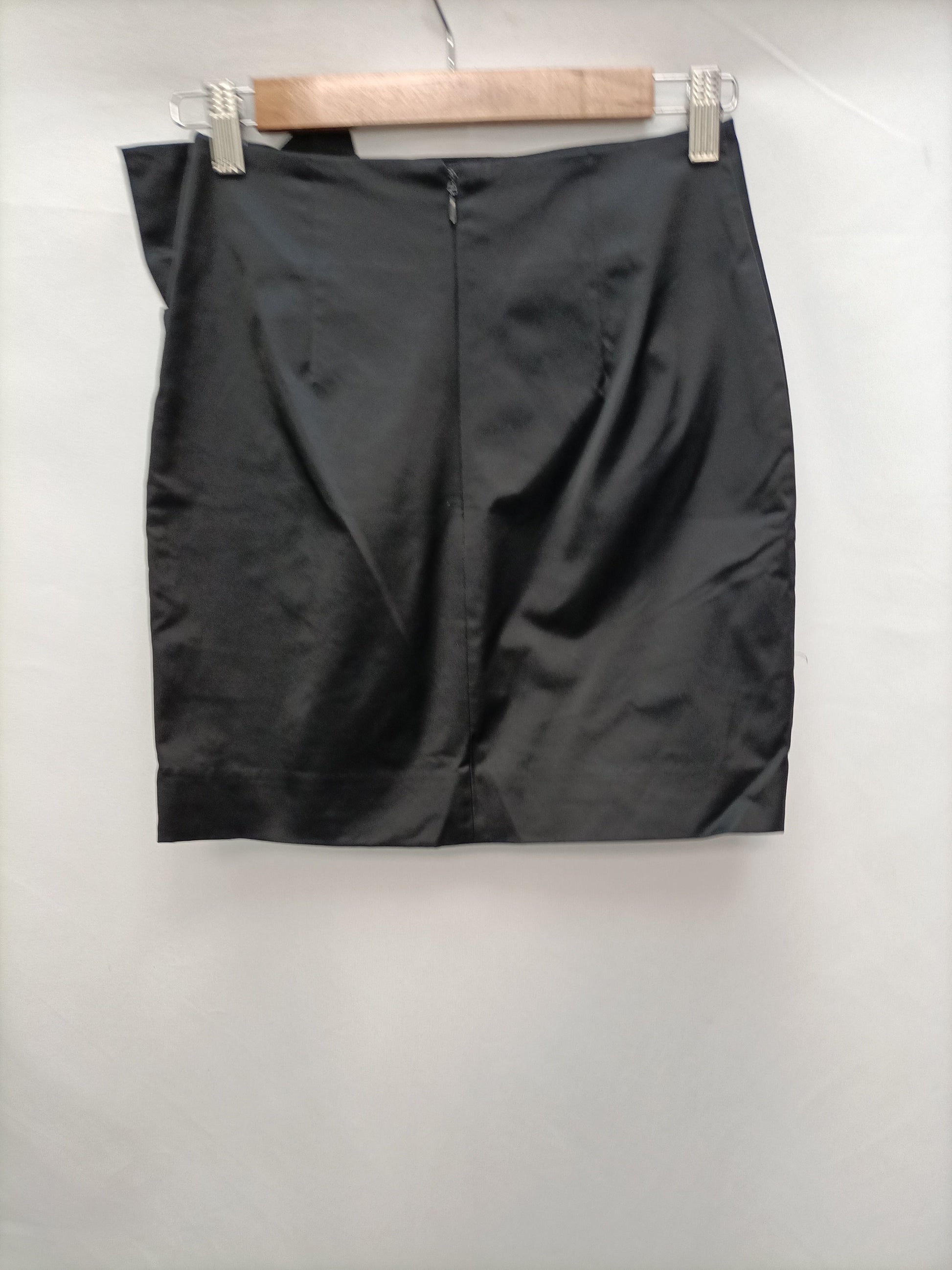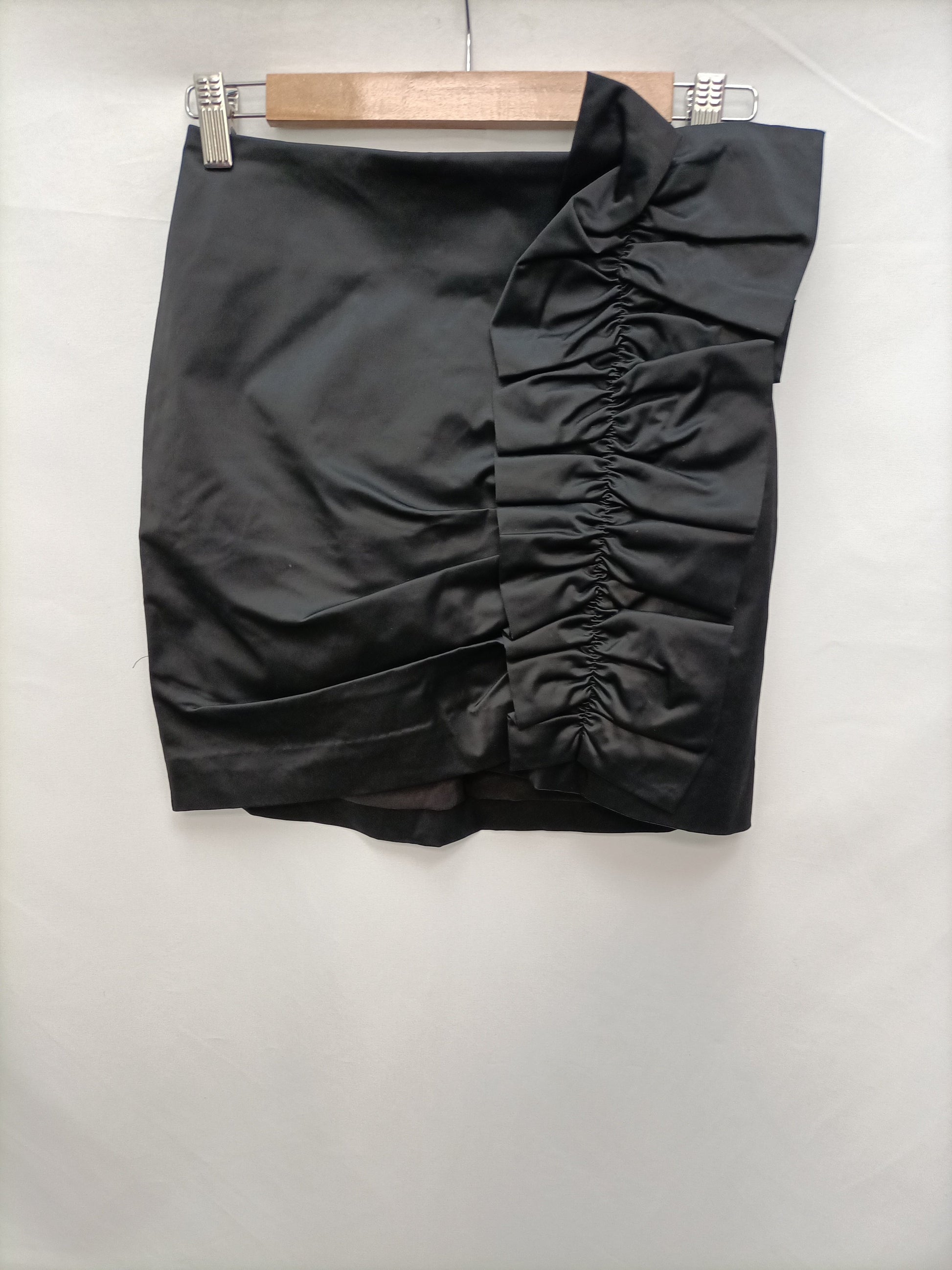 Falda corta negra ajustada con detalle de volante lateral. No elástica. Cintura 34 cm Largo 43 cm