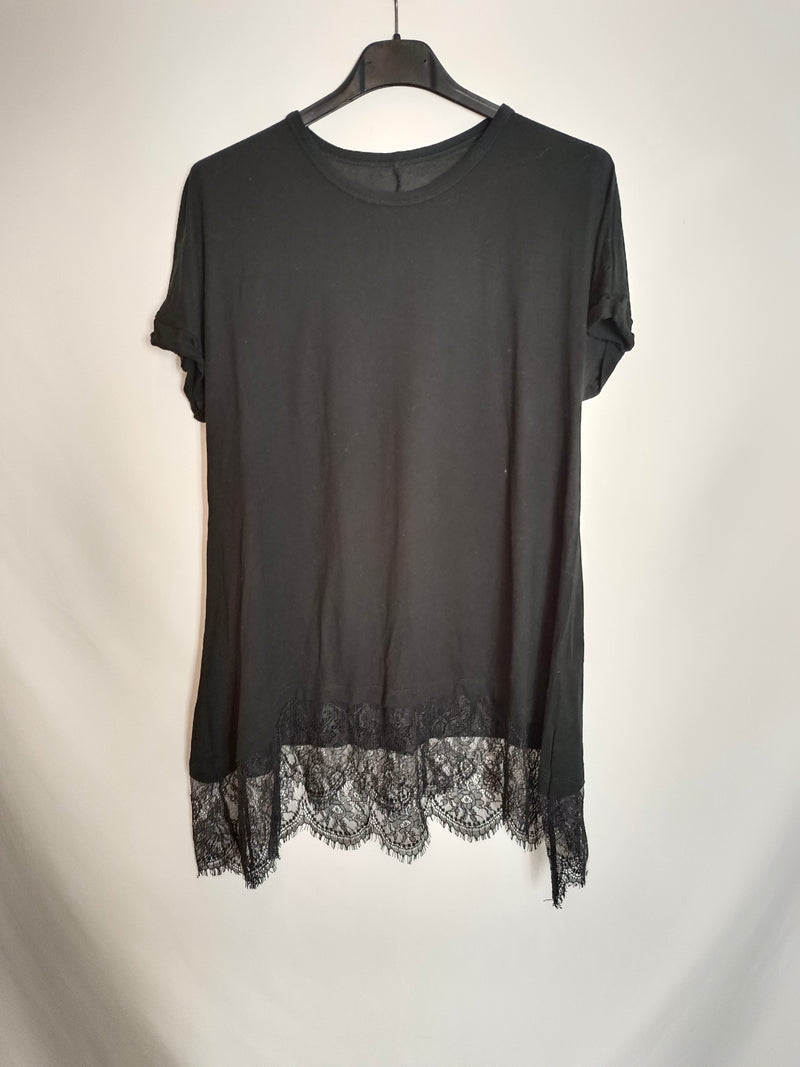 OTRA. Camiseta negra encaje TU(S)