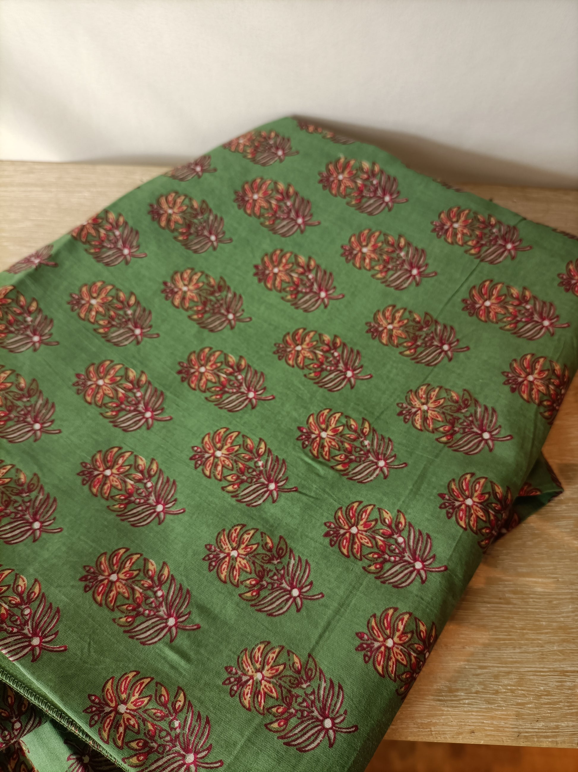 SIN ESTRENAR. Pareo verde con flores burdeos