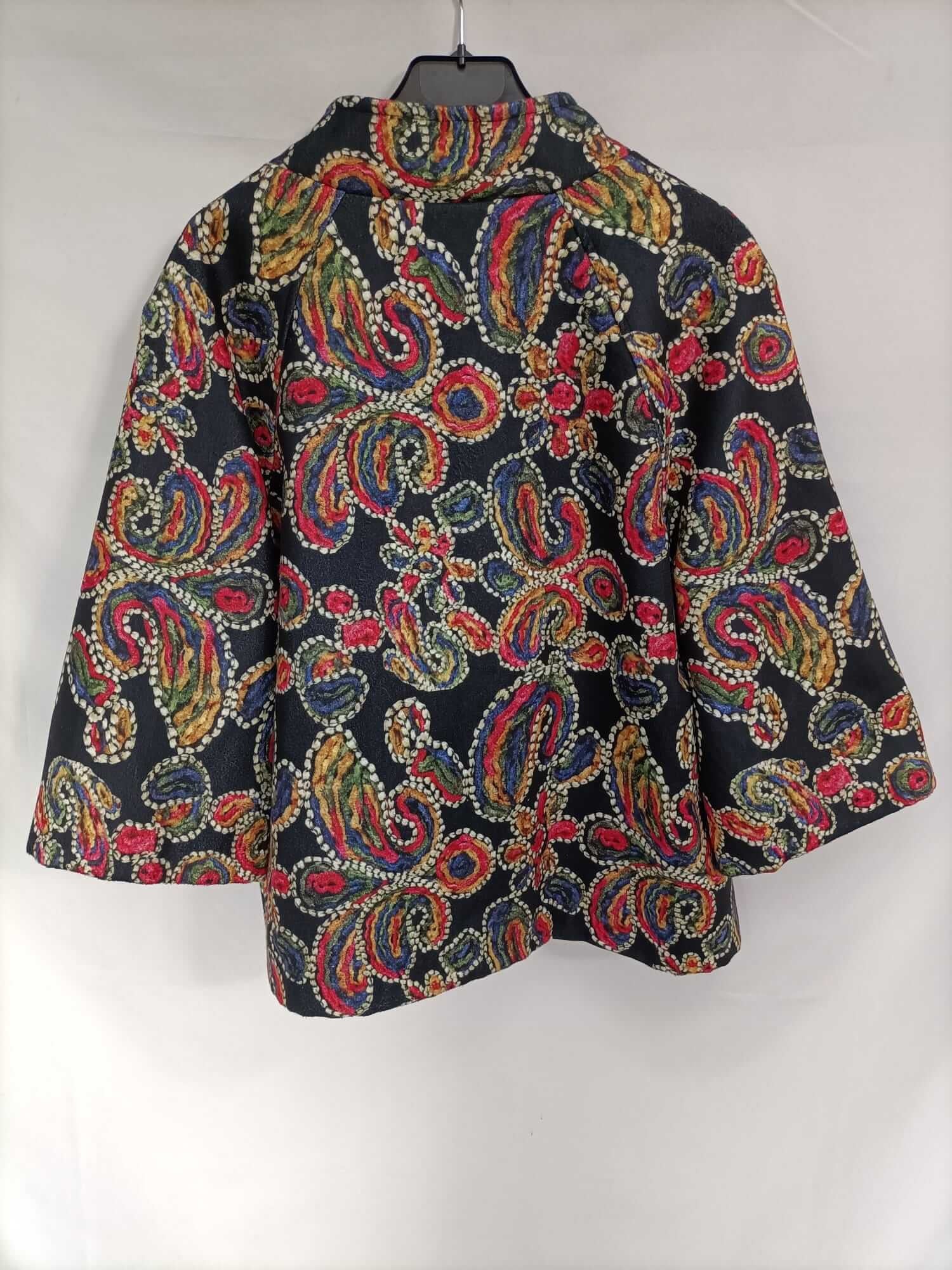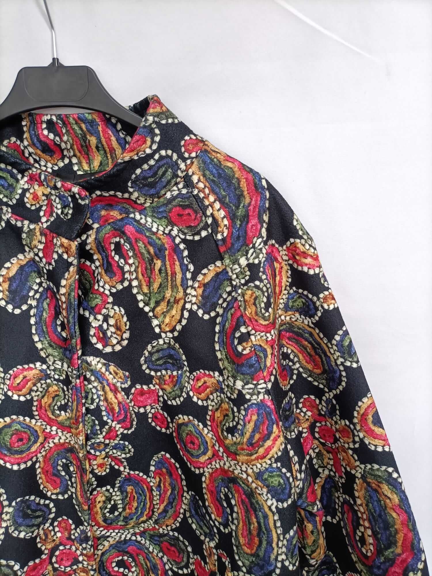 Otras.xl. abrigo de paño cortito con estampado de amebas en colores. Mangas 3/4. Se abrocha con botones. No elástico. De sisa a sisa 56 cm largo 71 cm