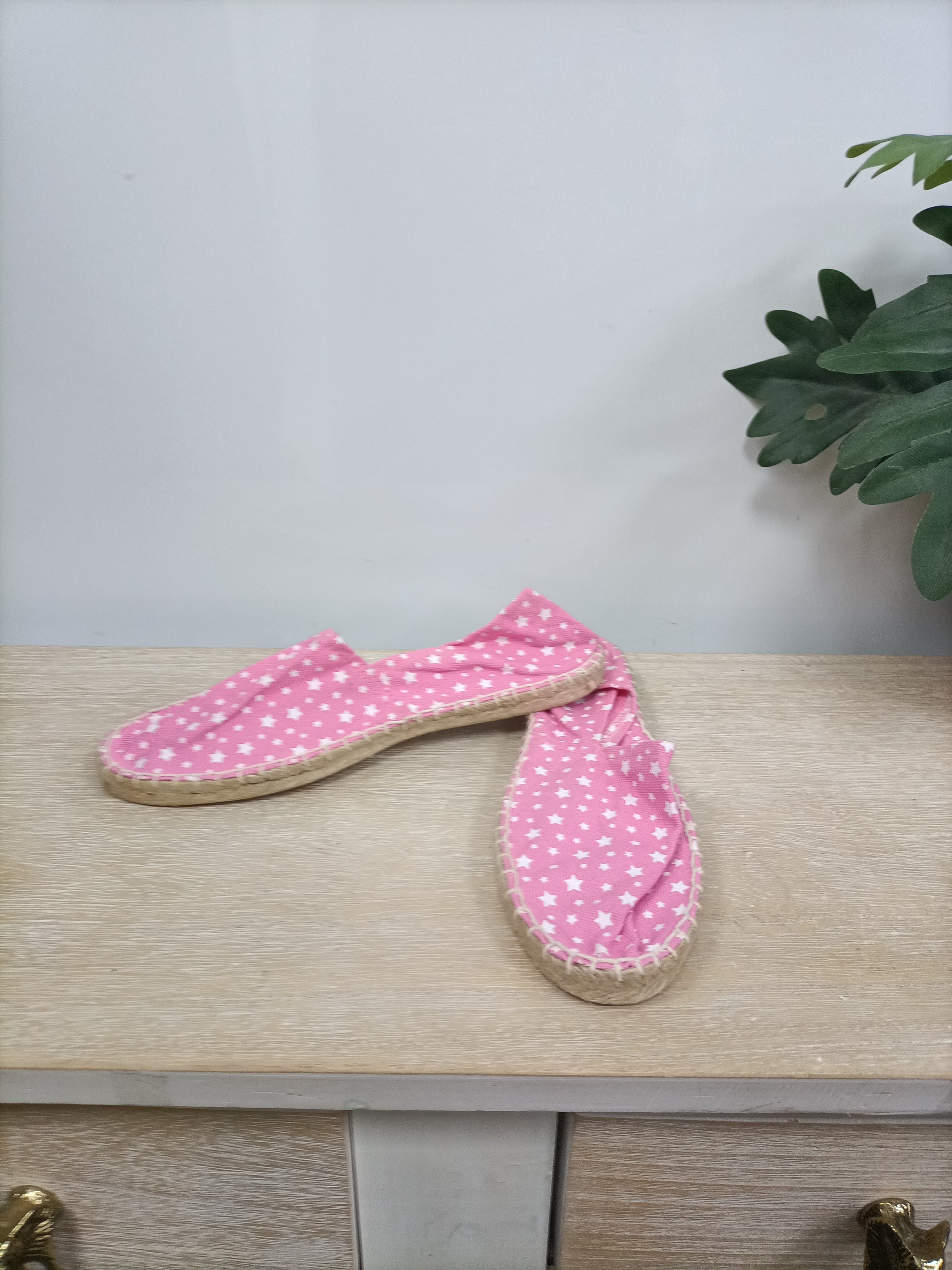 Alpargatas rosas con estrellas blancas made in Spain. Talla 38