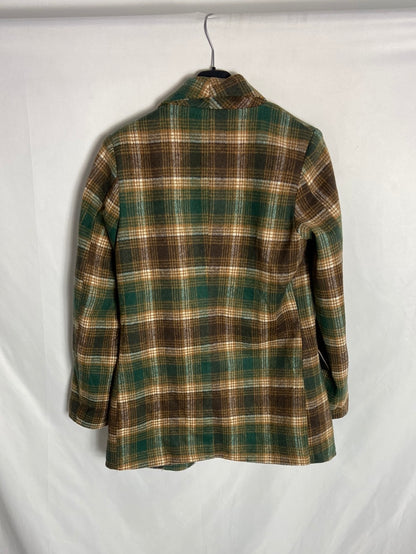Blazer de cuadros marrón y verde de tejido estilo paño . Largo 70 cm de sisa a sisa 44 cm