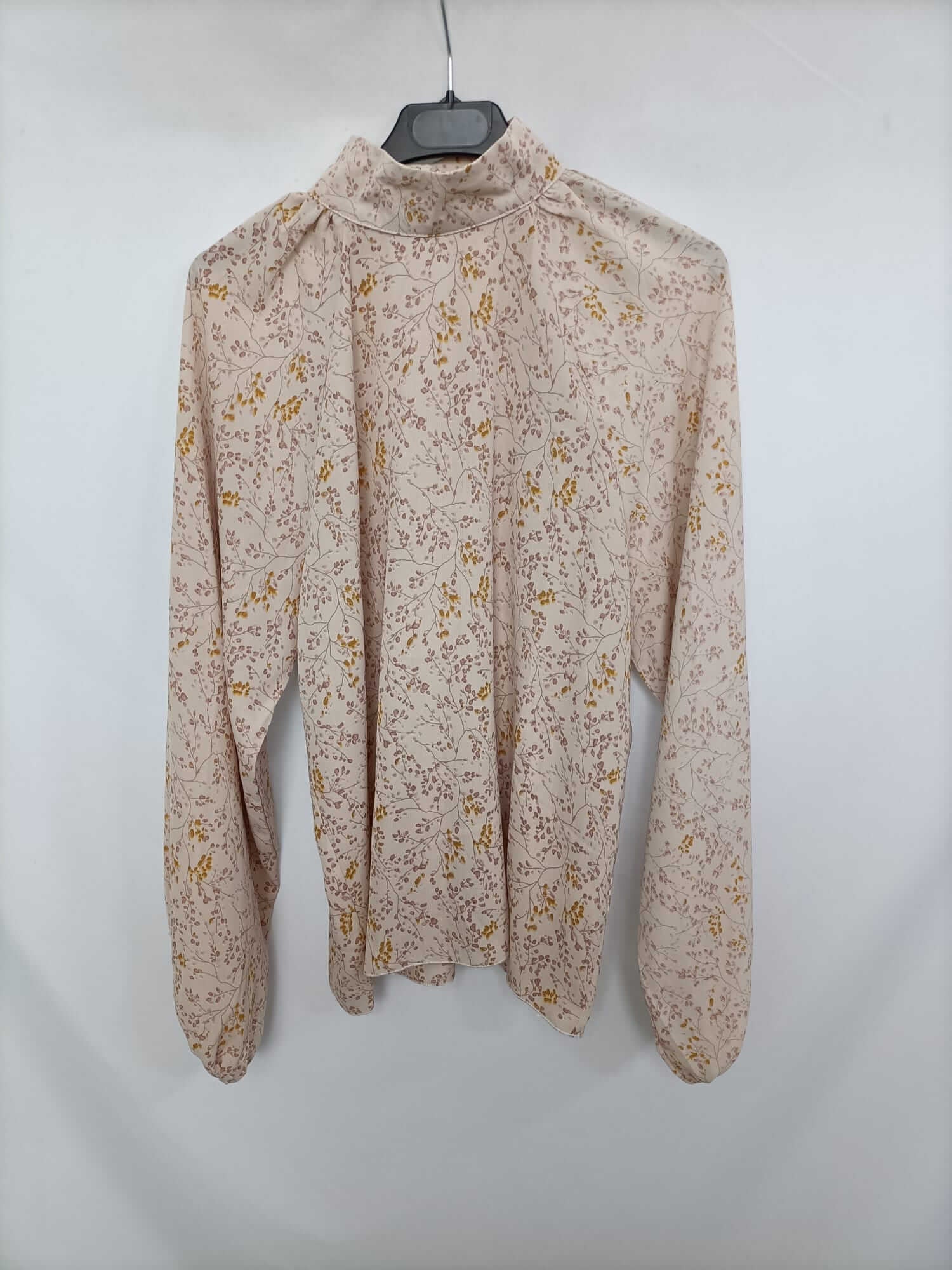 Otras. Tu (s/m). Blusa beige fluida con florecitas rosas y mostaza. Cuello perkins. No elástico. De sisa a sisa 51 cm largo 69 cm