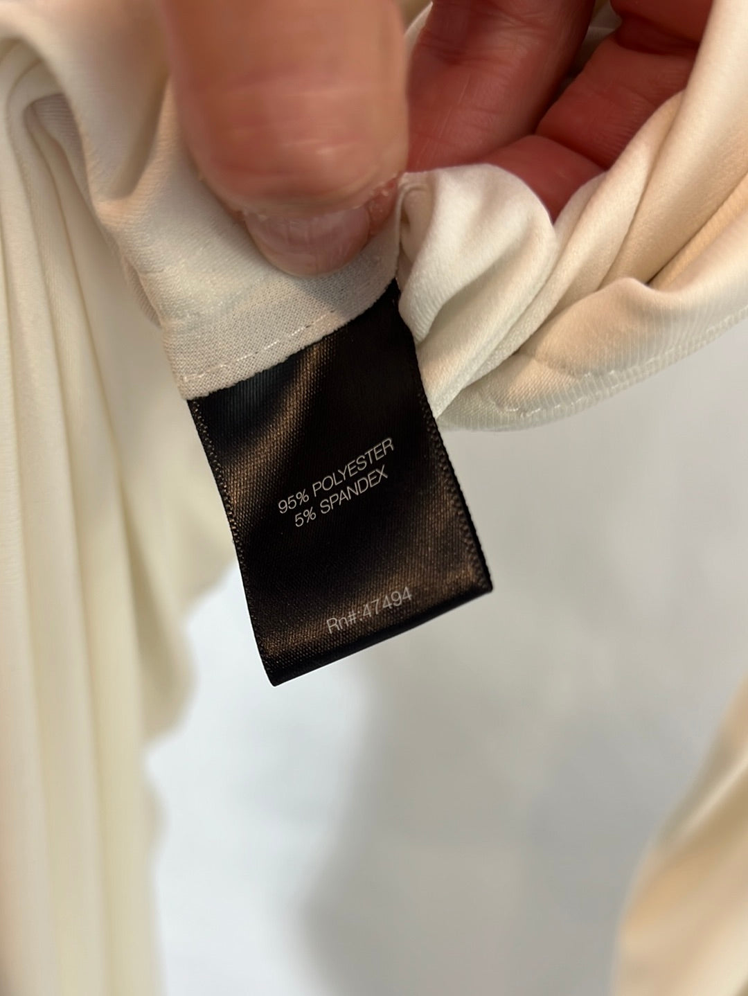 blusa blanco roto de tejido elástico con detalle de lazada delantera . Hombros 42cm, largo 98cm espalda