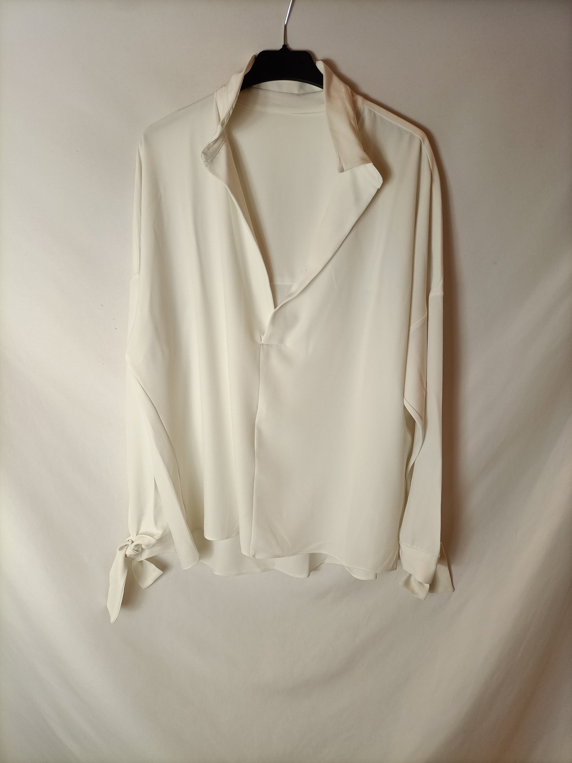 Blusa blanco roto fluida con detalle de lazada en la mangas