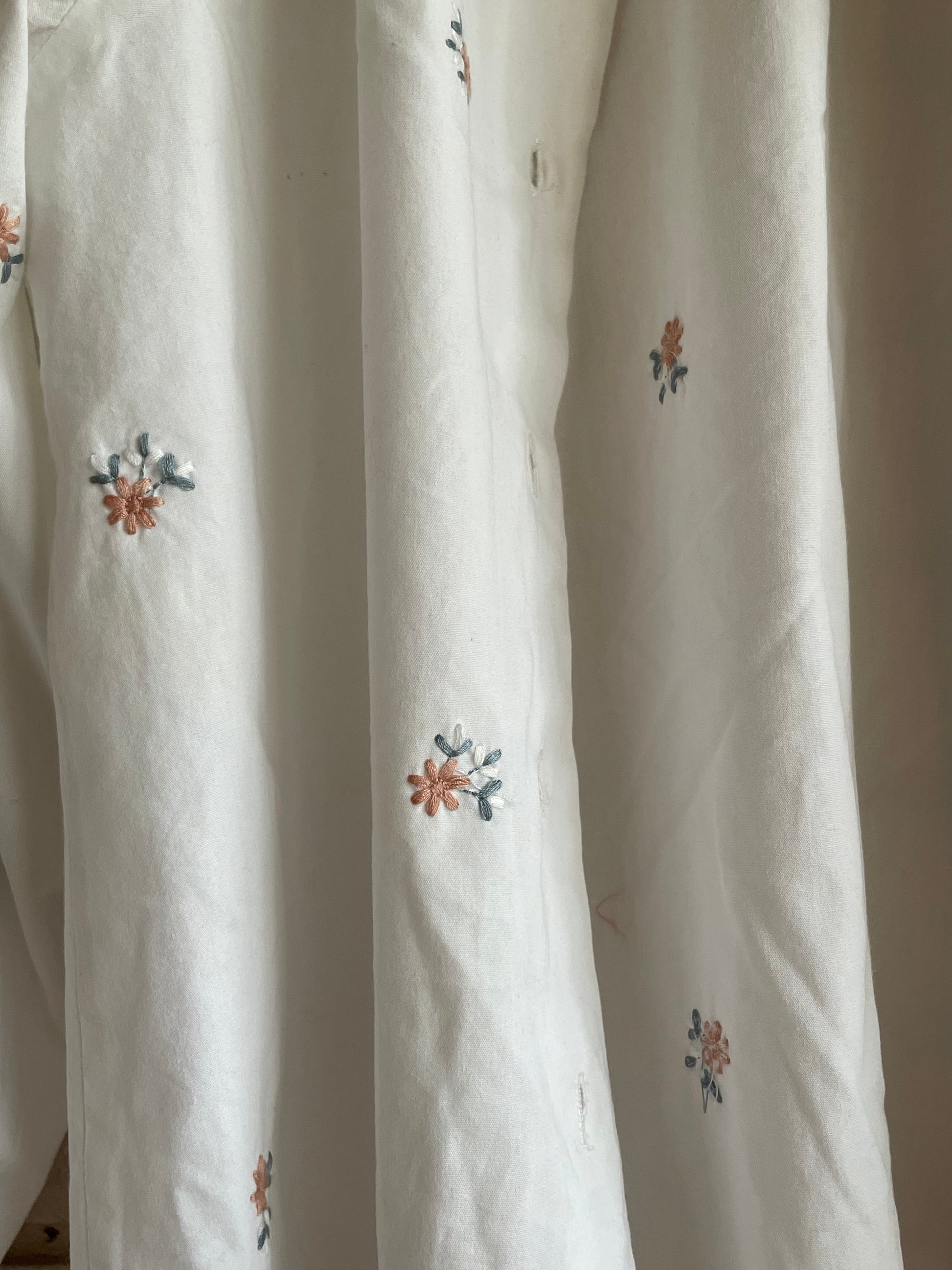 Blusa blanca de flores cuello bebé volante con flores bordadas .