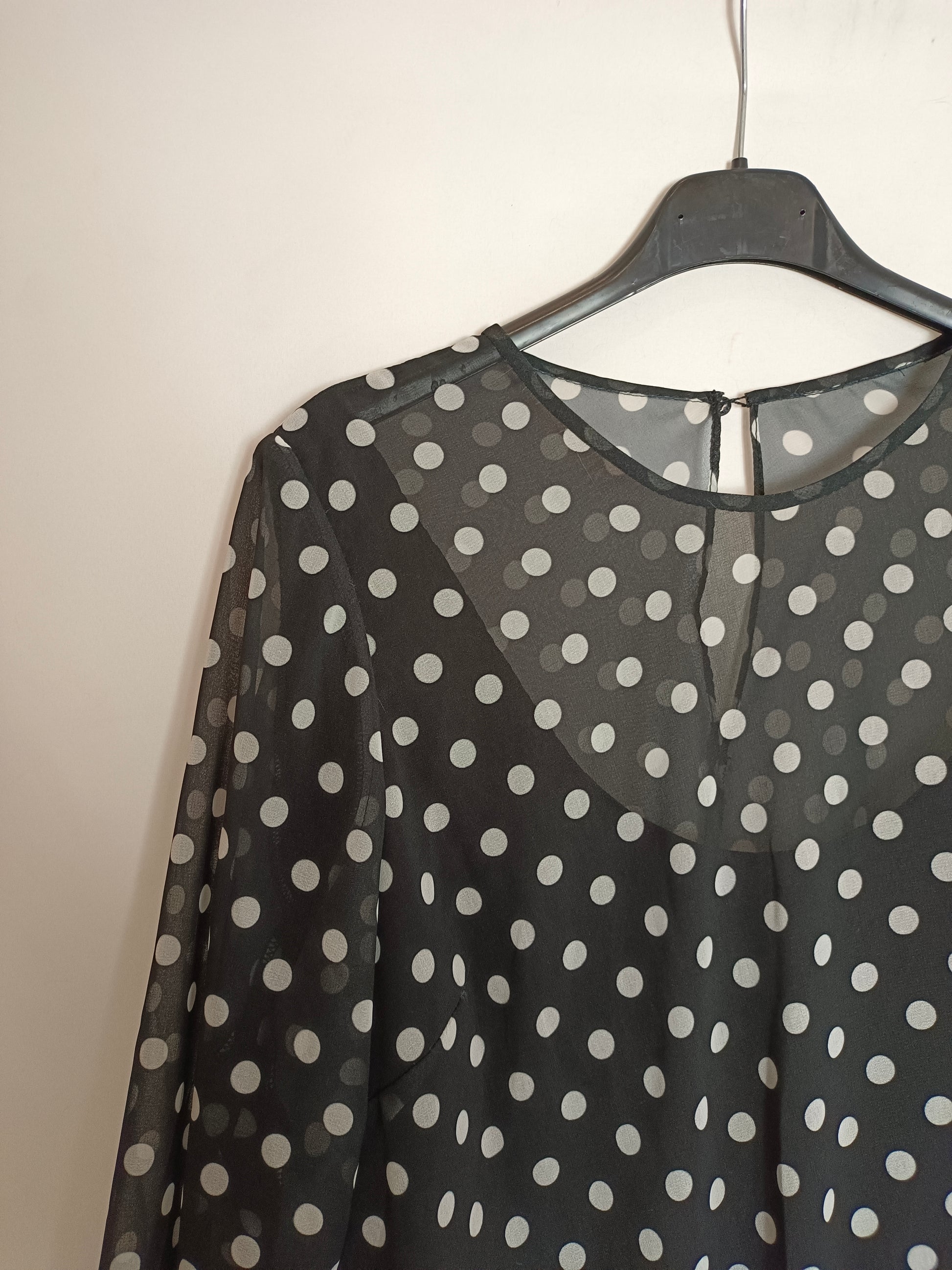 blusa negra fluida con con lunares. efecto capa.
