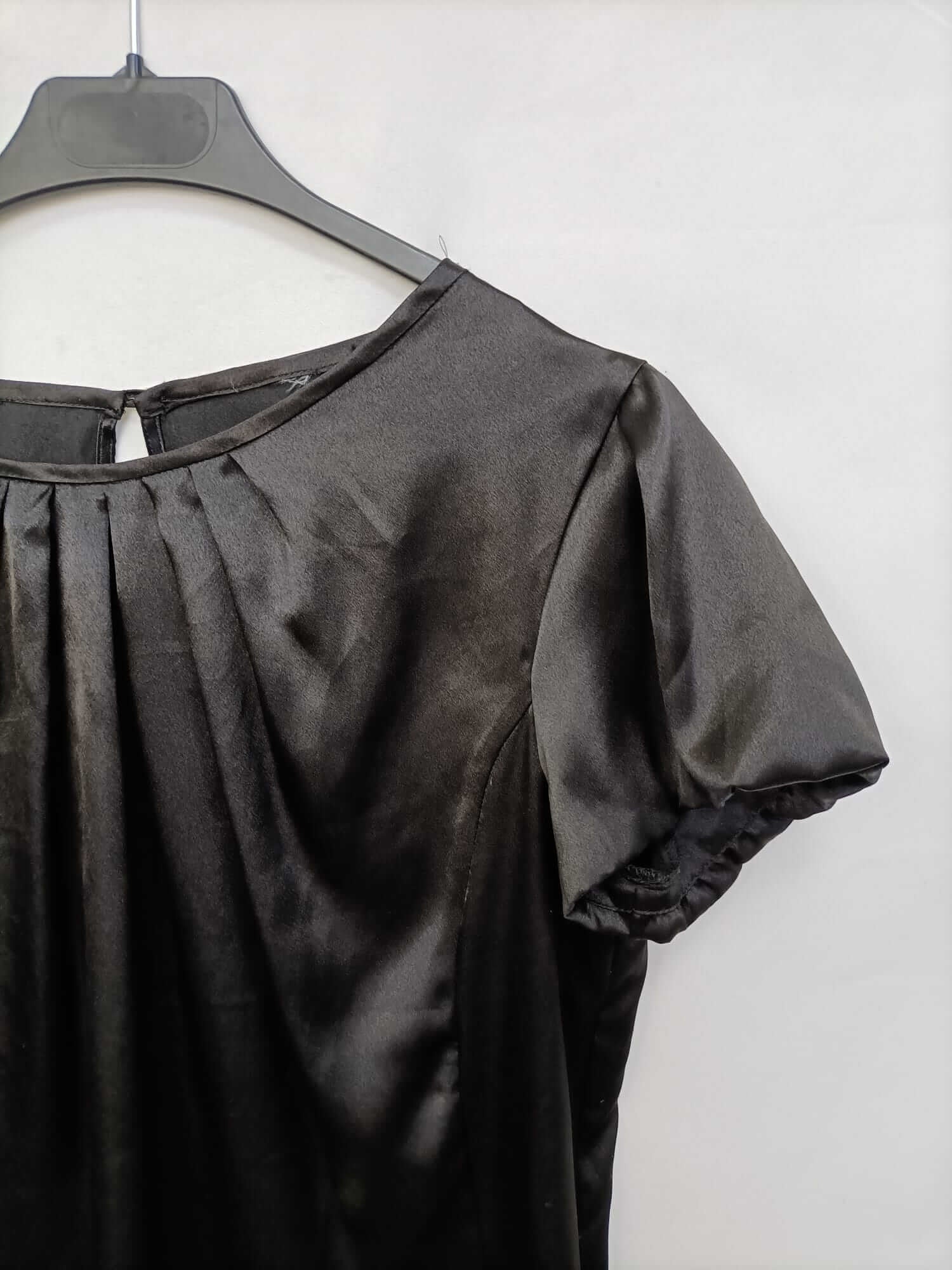 Otras. Tu (s/m). Blusa negra satinada con las mangas cortas y fruncida. No elástica. De sisa a sisa 42 cm largo 63 cm