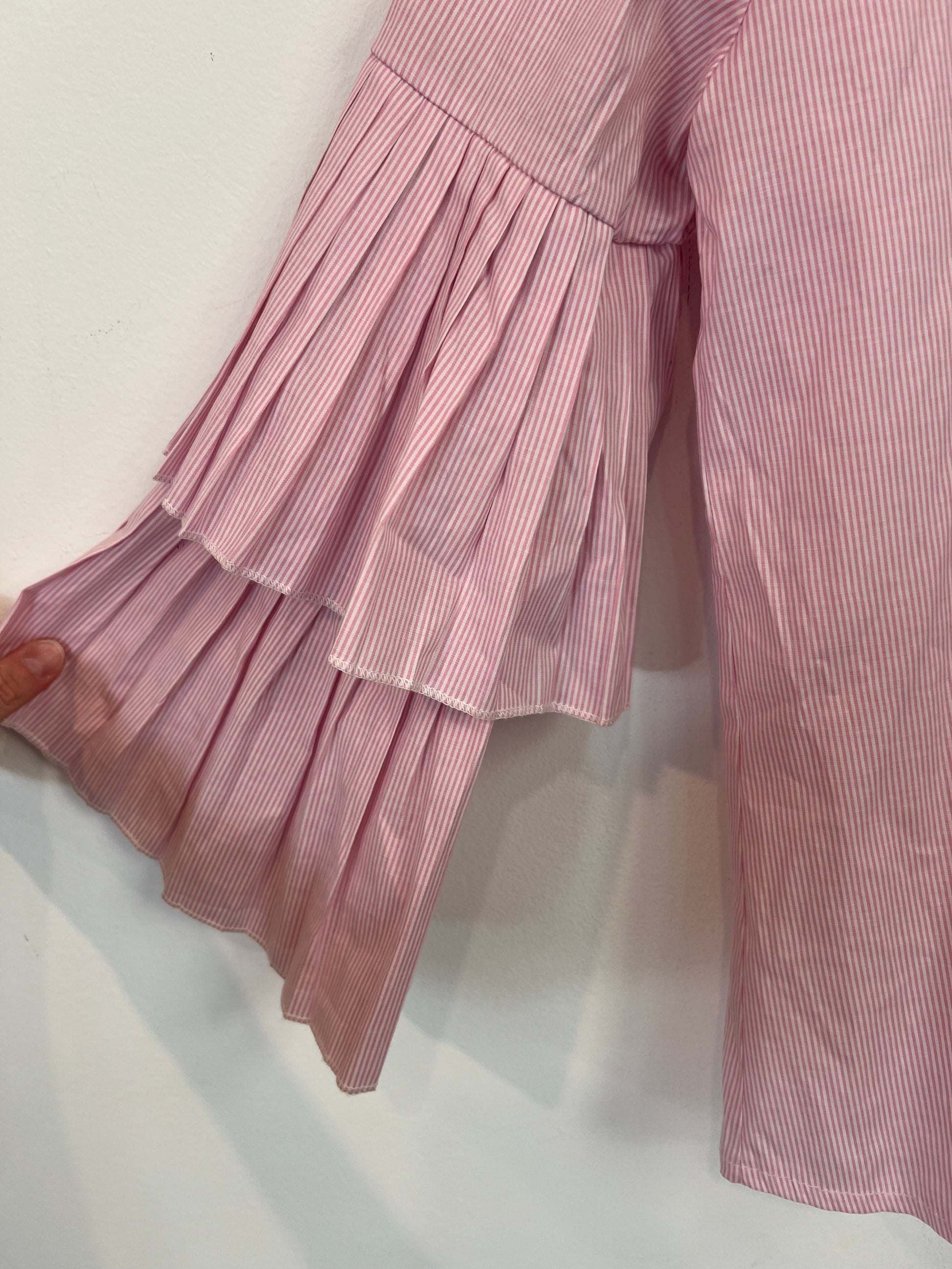no elástica. Mangas con volantes. de sisa a sisa 48 cm largo 60 cm.