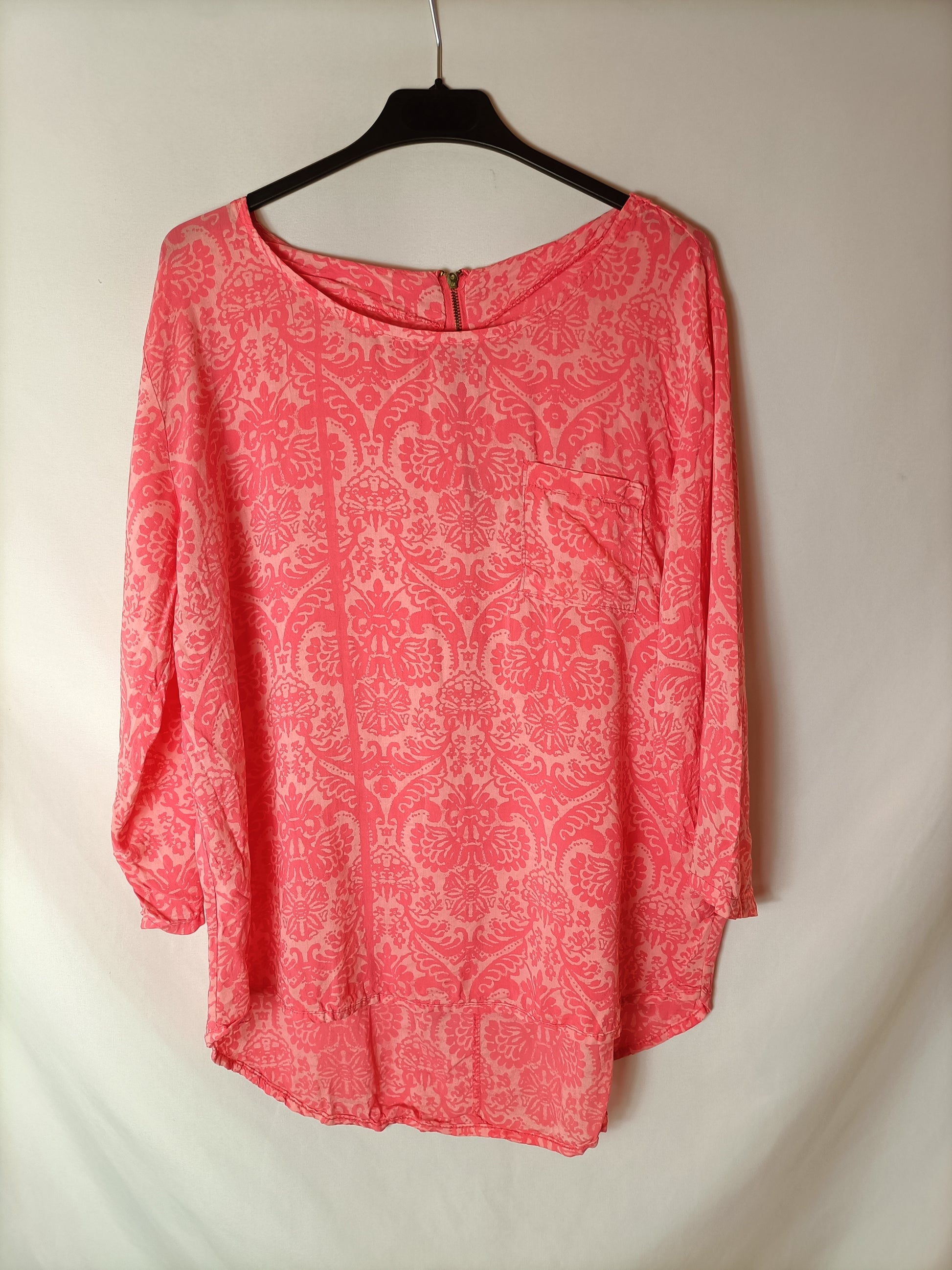Blusa rosa fluida con flores en un tono mas oscuro. Cremallera cuello.