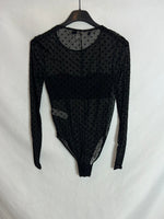 OTRAS. Body negro semitransparente topos. T S