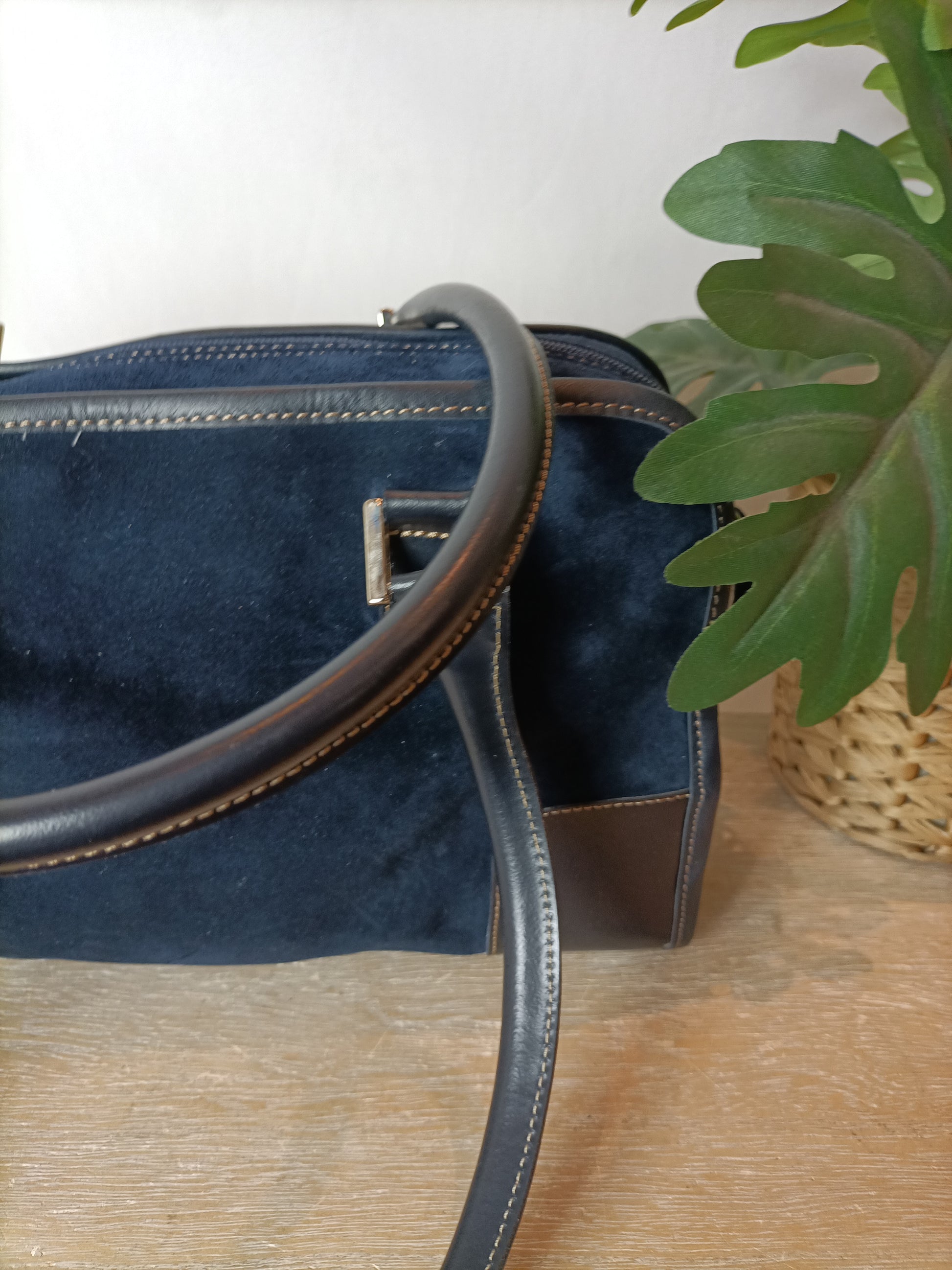 Bolso azul antelina. No se puede acreditar pero parece piel