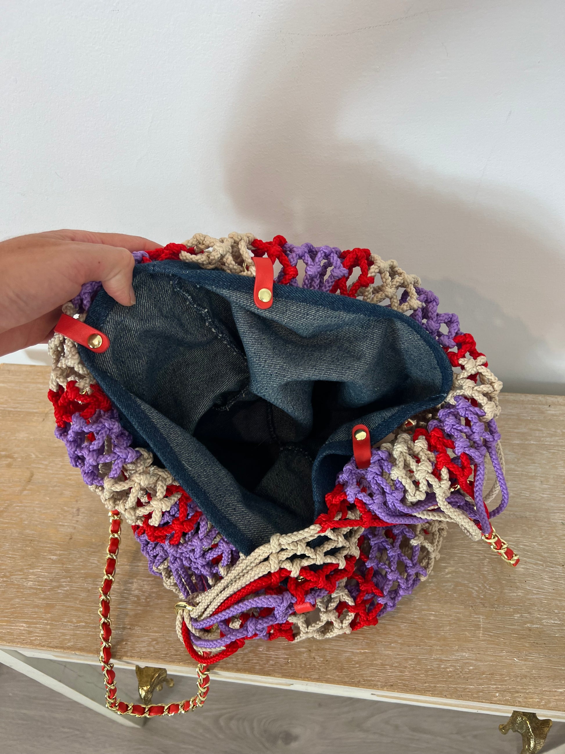 NUEVO SIN USO. Bolso ganchillo colores con interior extraible