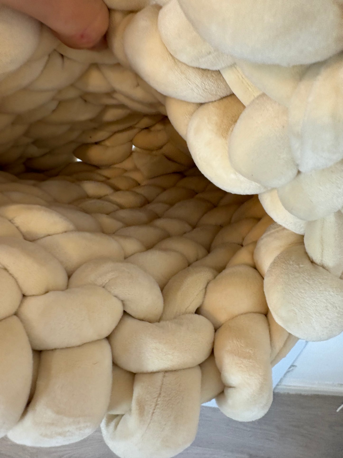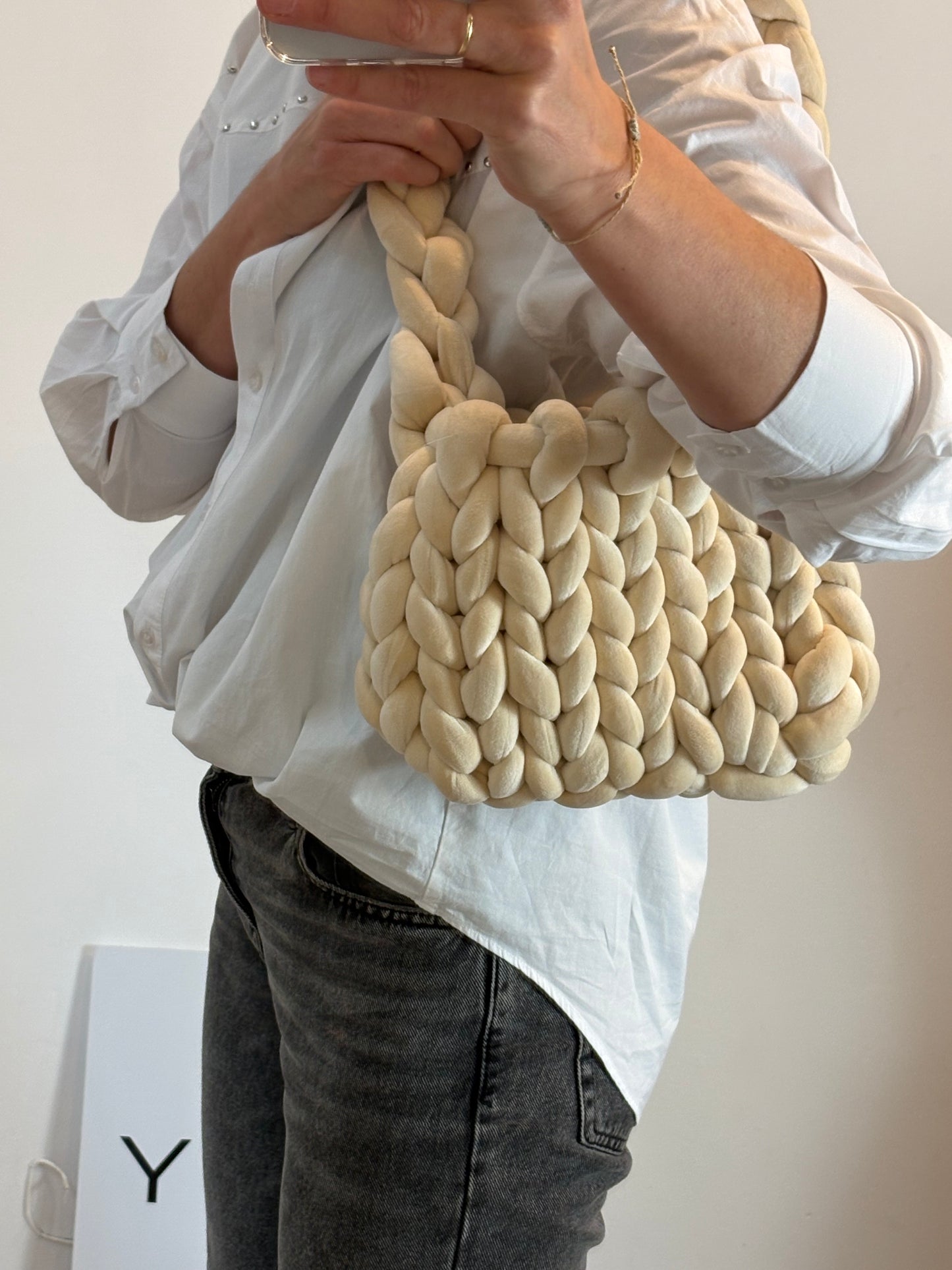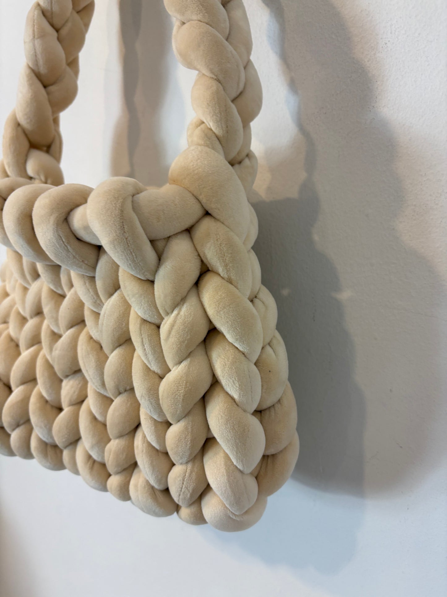 Bolso ganchillo grueso beige claro. Alto 22 cm