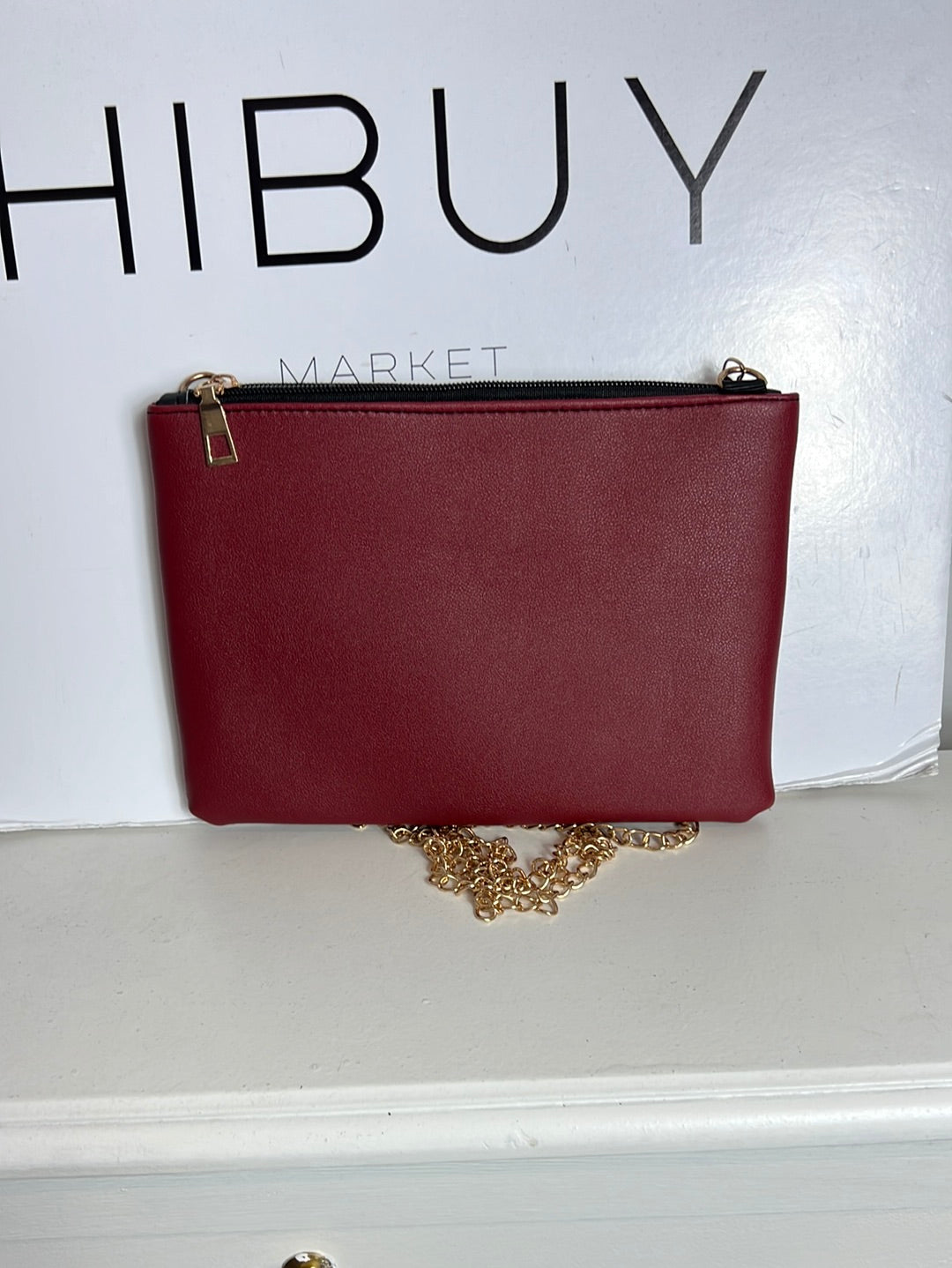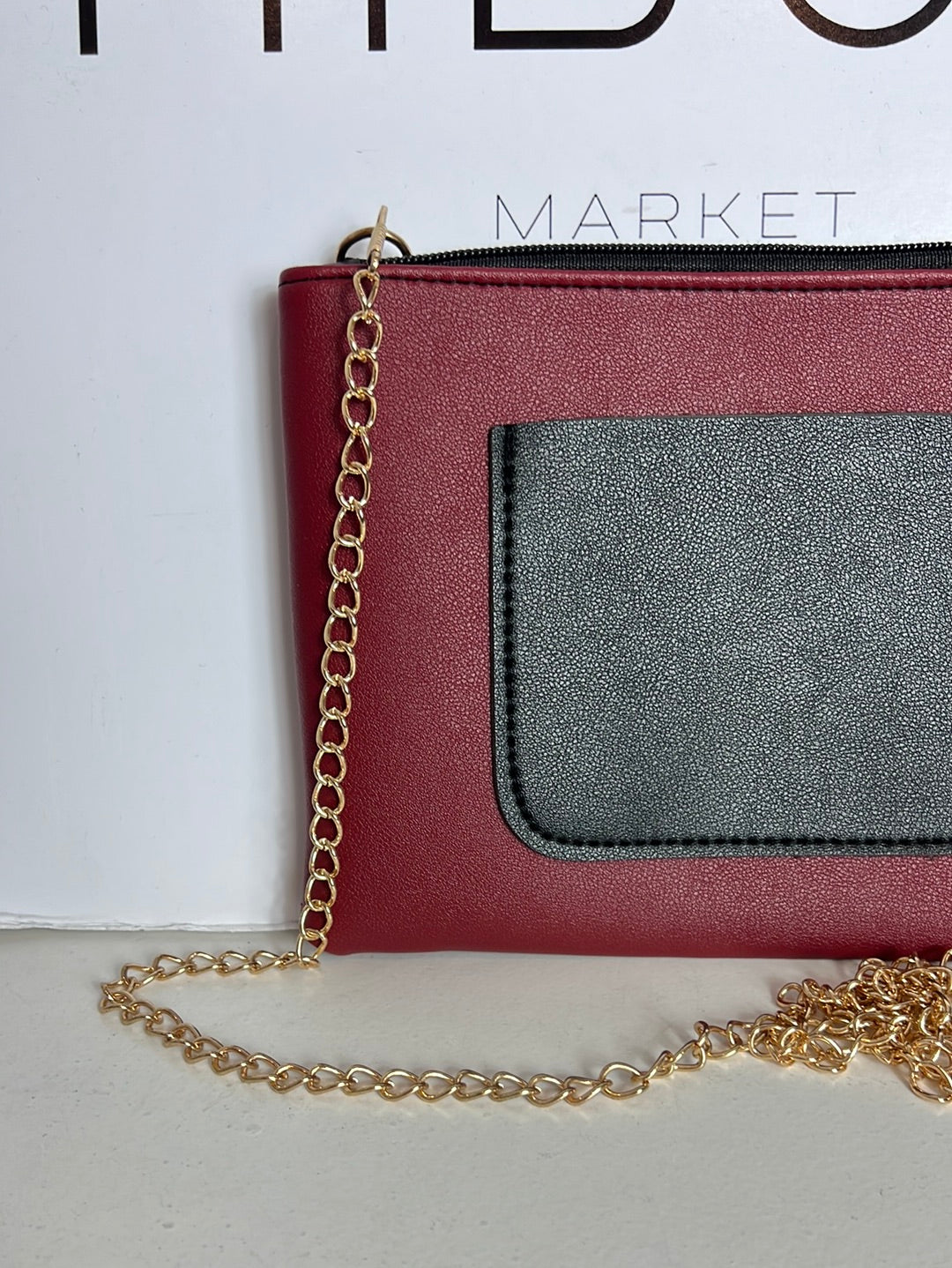 NUEVO SIN USO. bolso burdeos con bolsillo negro