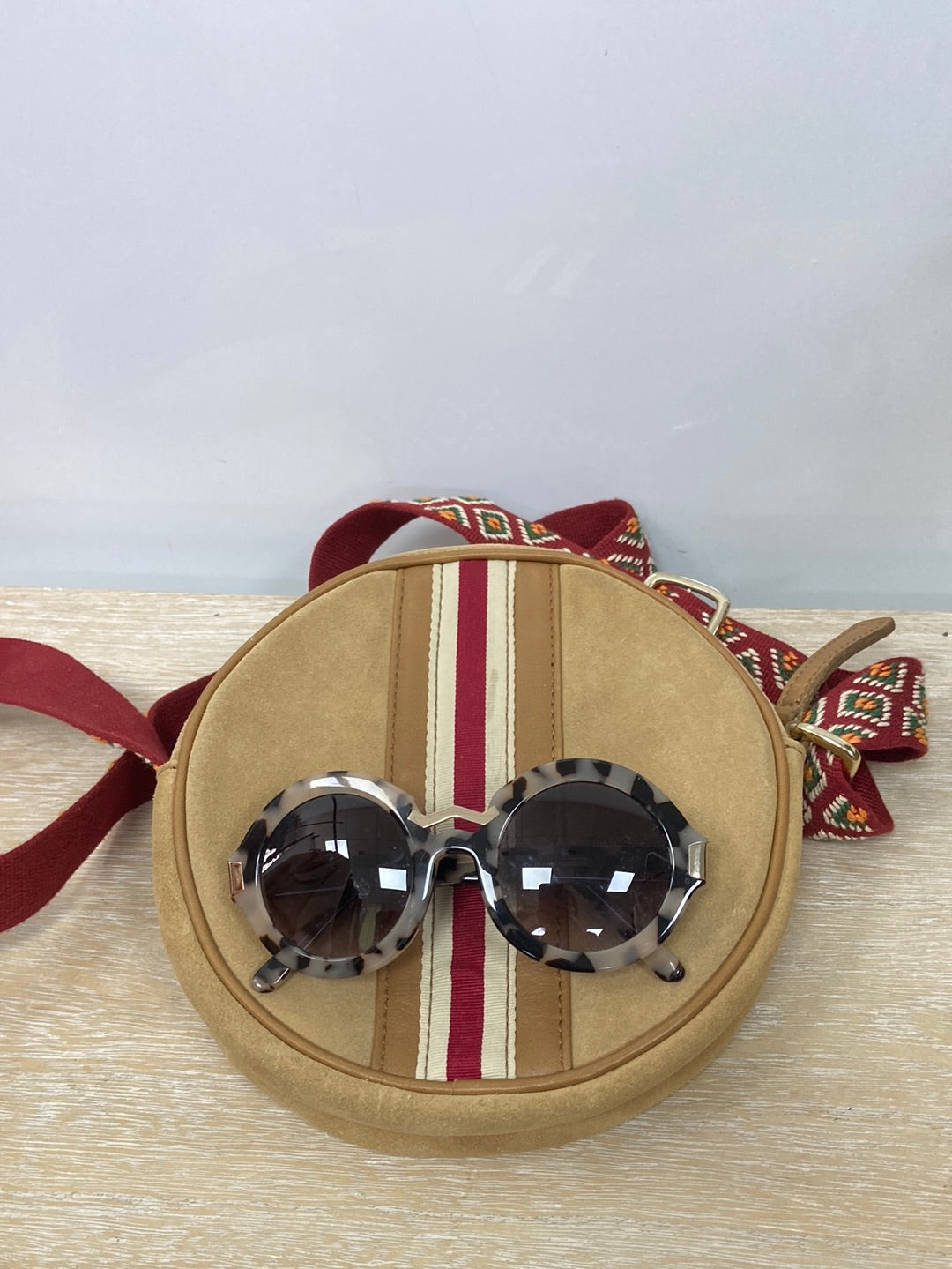 Sin datos. Bolso redondo beige correa ajustable. Alto 19 cm largo 19 cm y ancho 4 cm- Tiene alguna marquita.