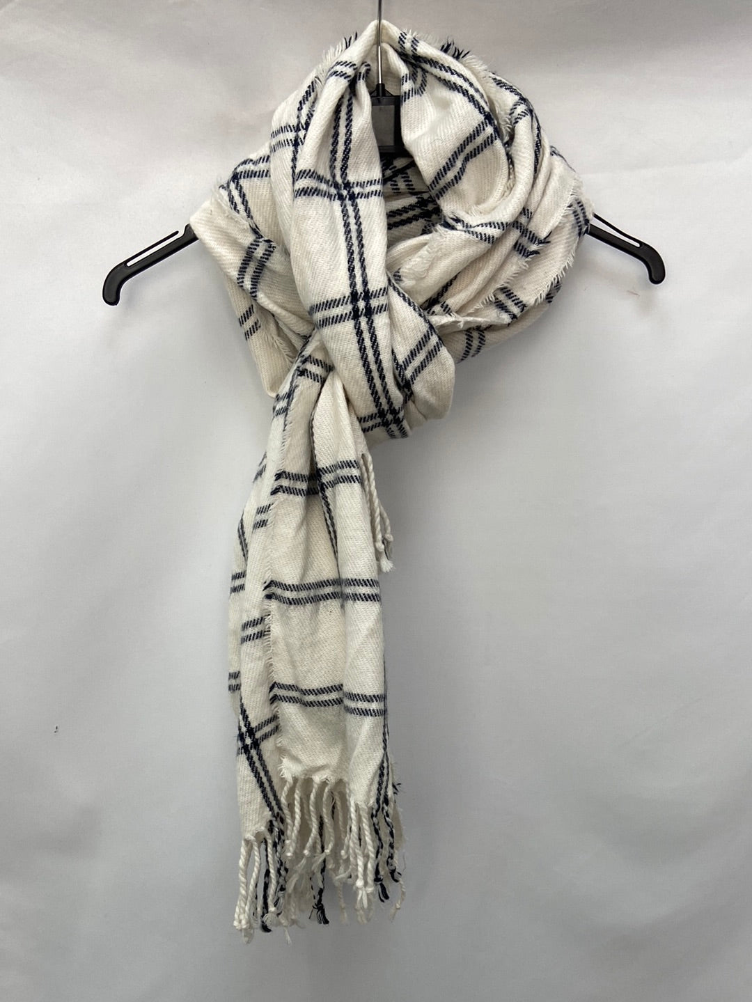 OTRAS.Bufanda blanca cuadros azules