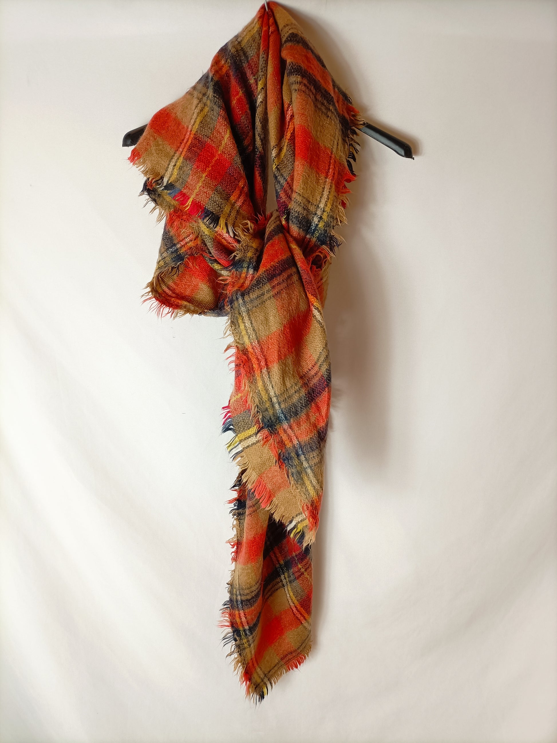 bufanda de cuadros beige y naranjas