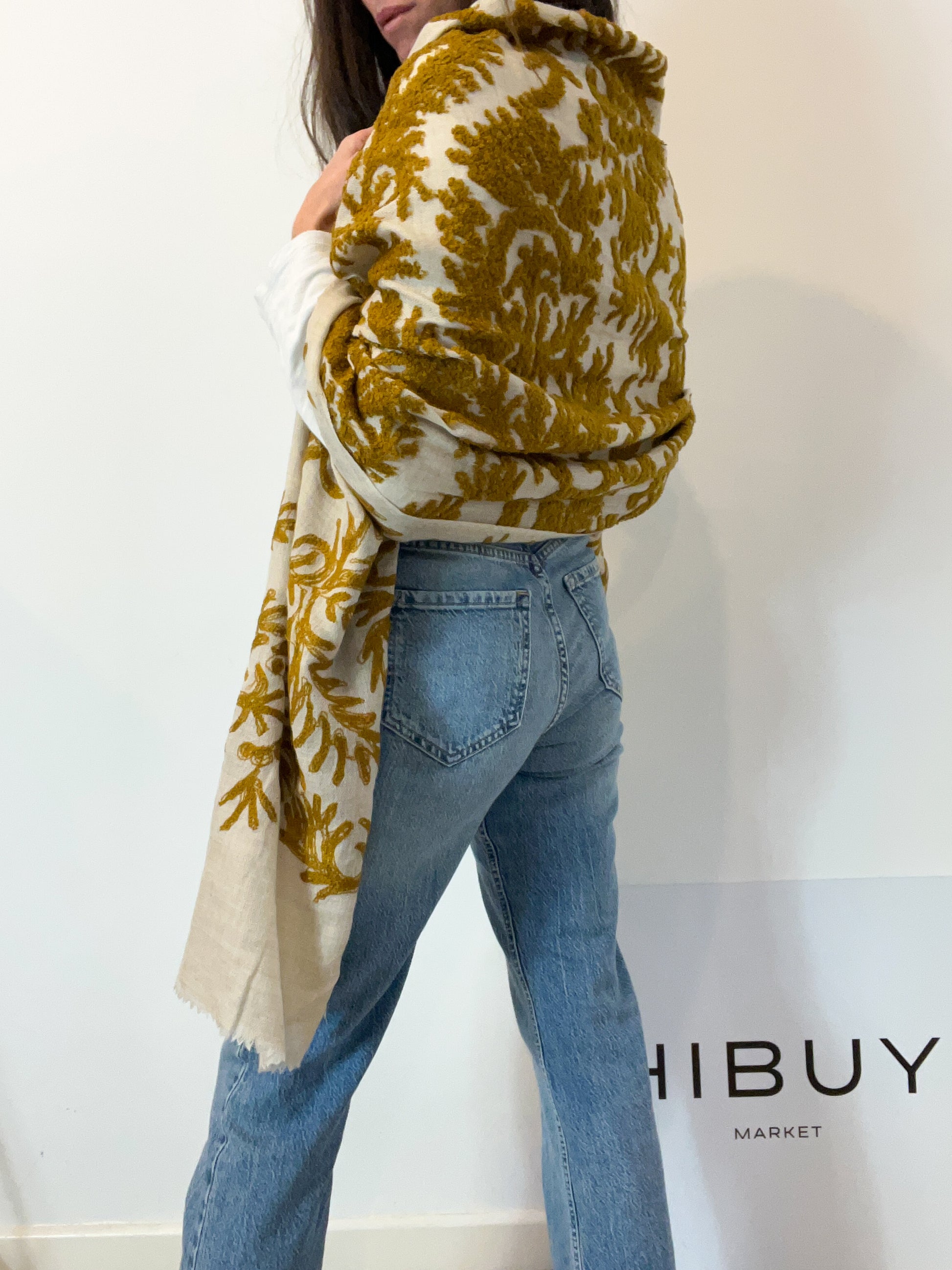 NUEVO CON ETIQUETA. Ancho 73 cm, largo 182 cm. 100% lana