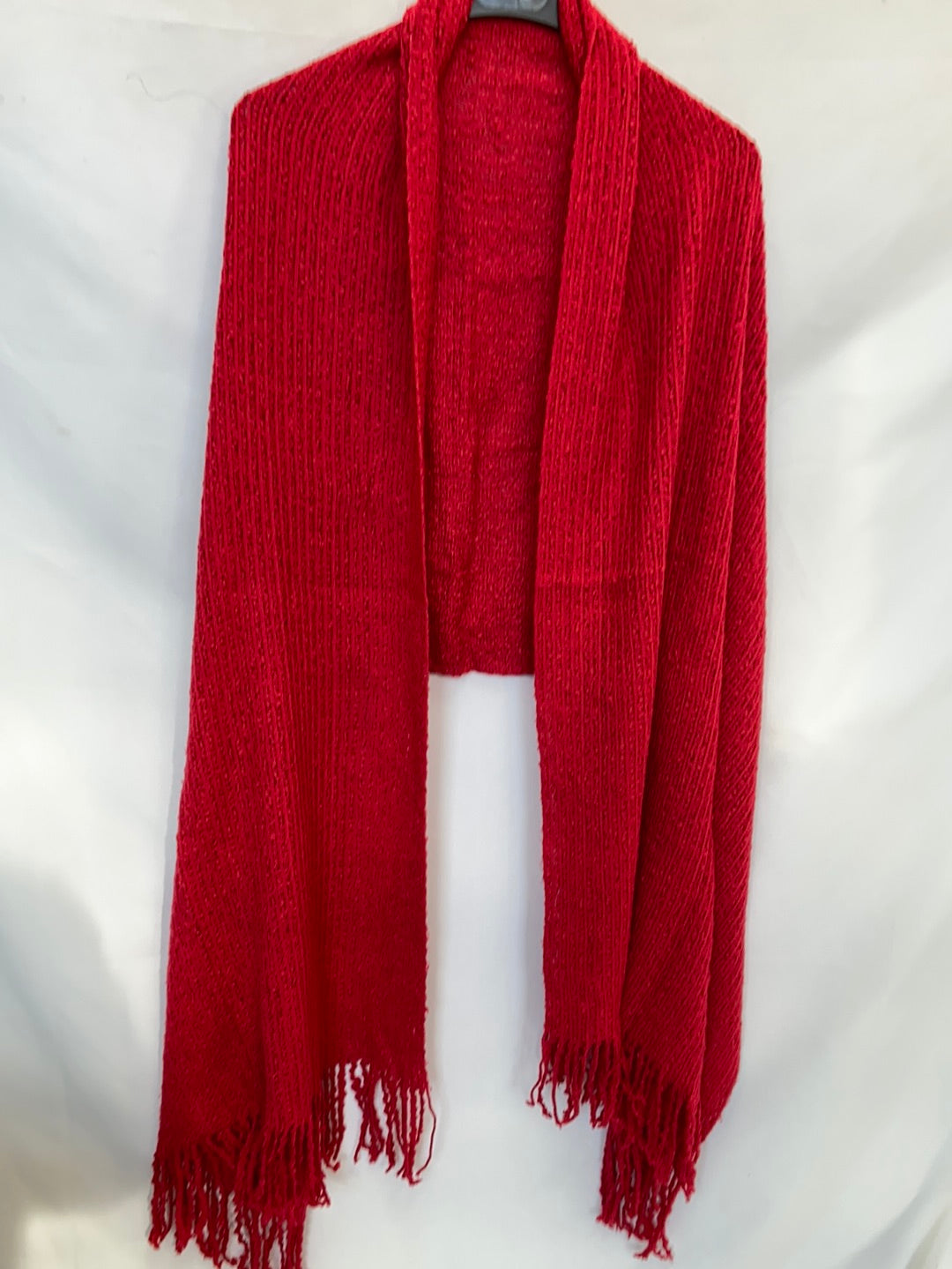 Bufanda oversized en tono rosa muy oscuro/burdeos con flecos.