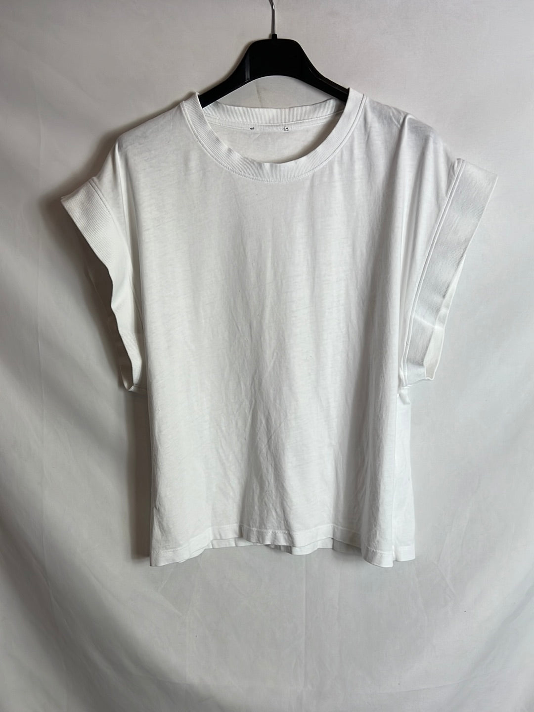 OTRAS. Camiseta blanca detalle cuello y mangas. TM