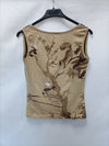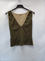 Camiseta espalda pico sin mangas con estampado de árbol en la espalda. Tonos tierra. Elástica.