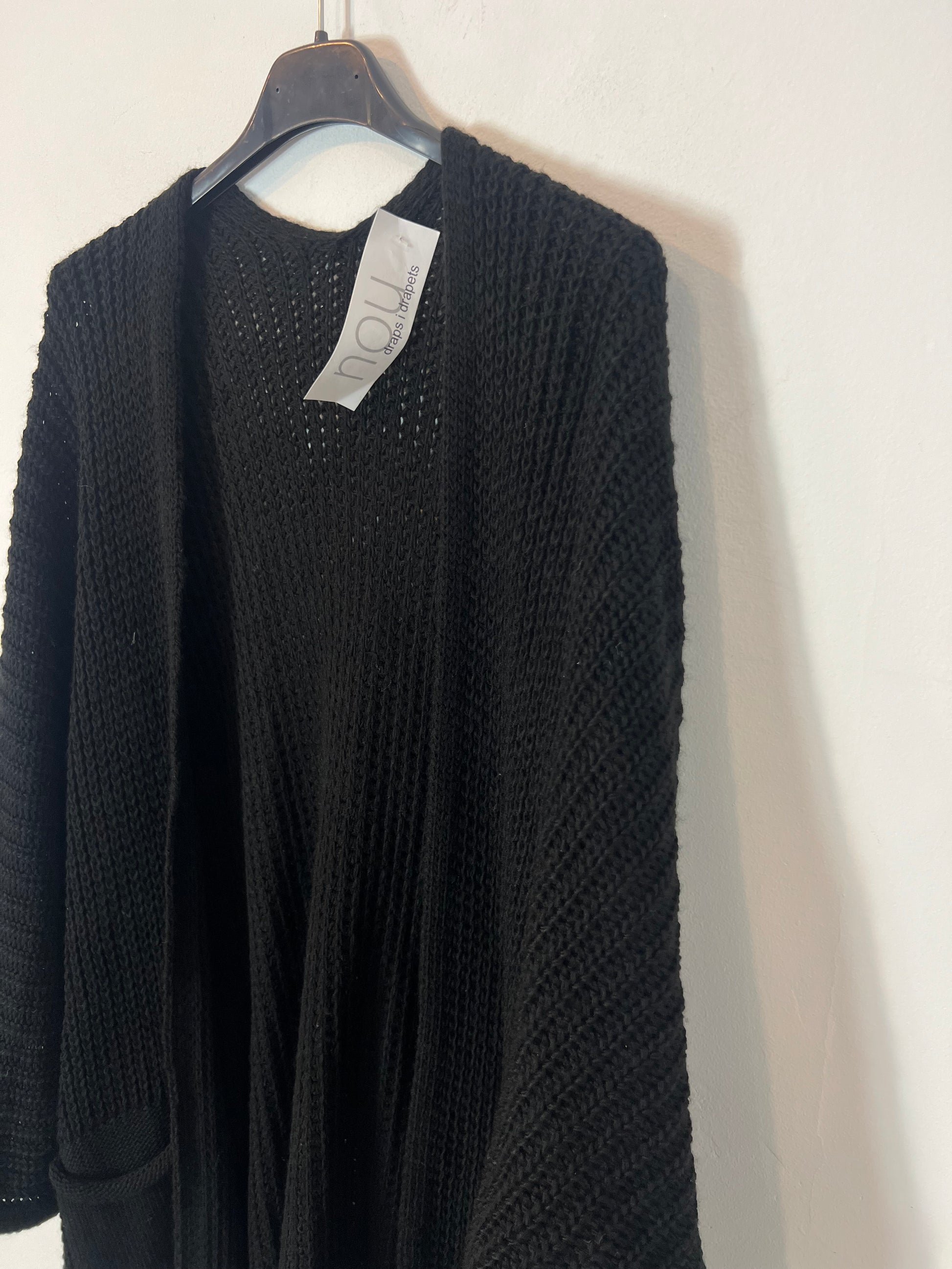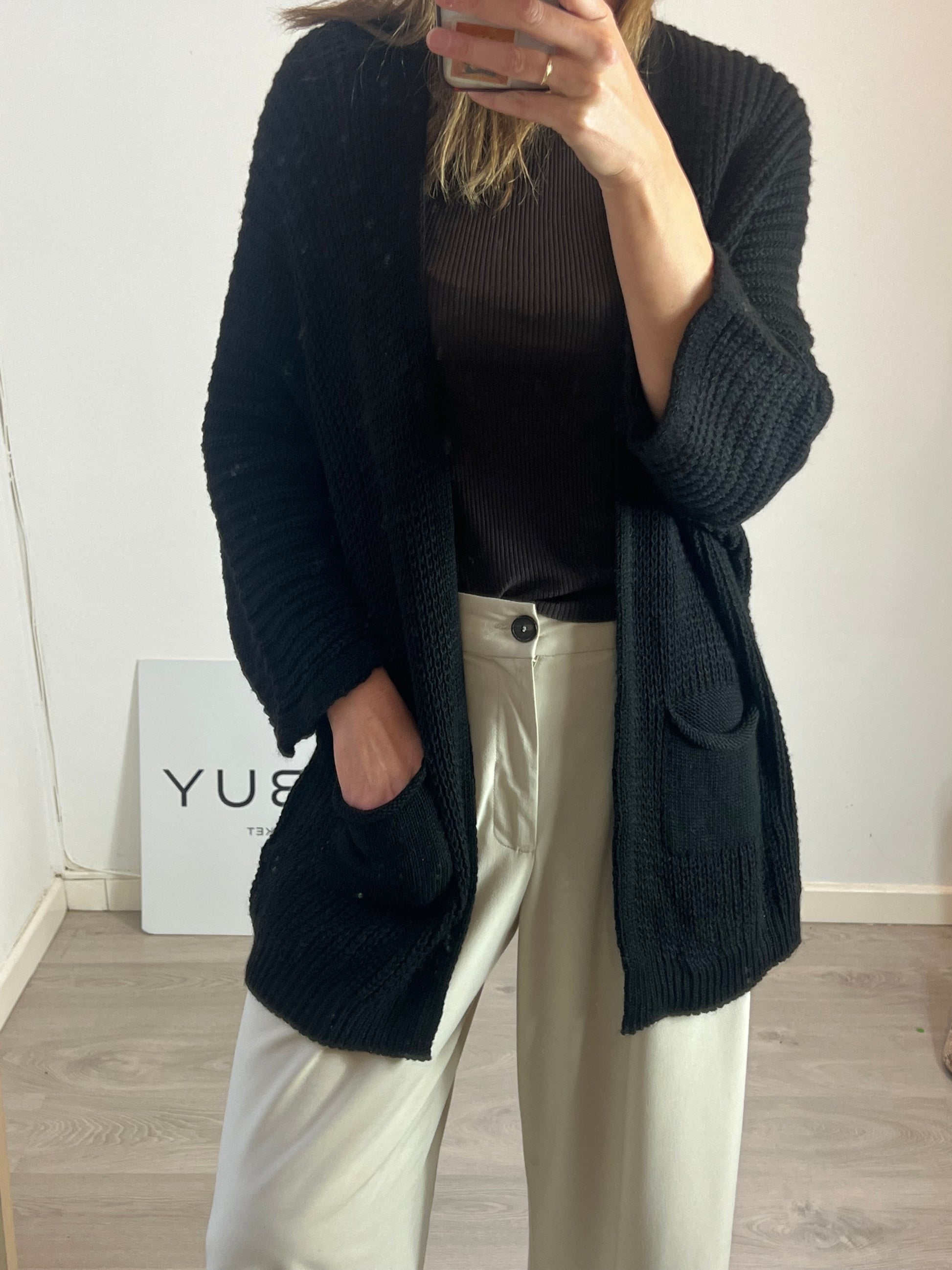 NUEVO CON ETIQUETA. Cárdigan negro bolsillos. Largo 81 cm