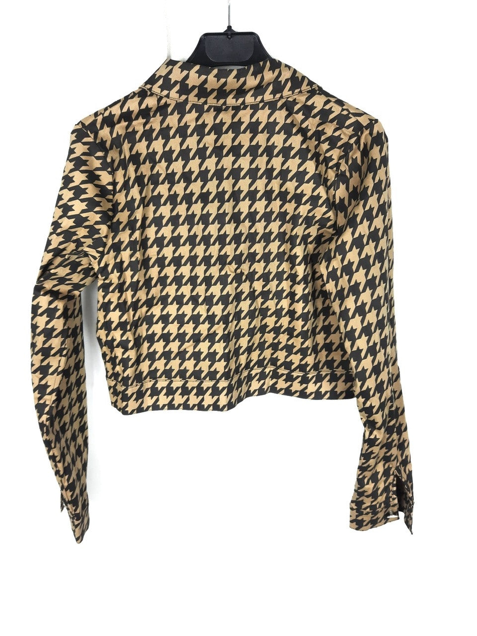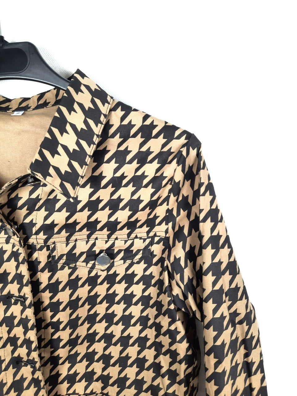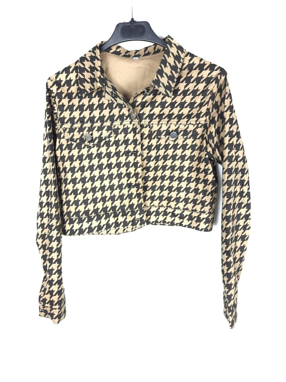 Otras. Cazadora corita de tejido denim en pata de gallo negra y camel. Abotonada y semielastica. De sisa a sisa 45 cm largo 45 cm