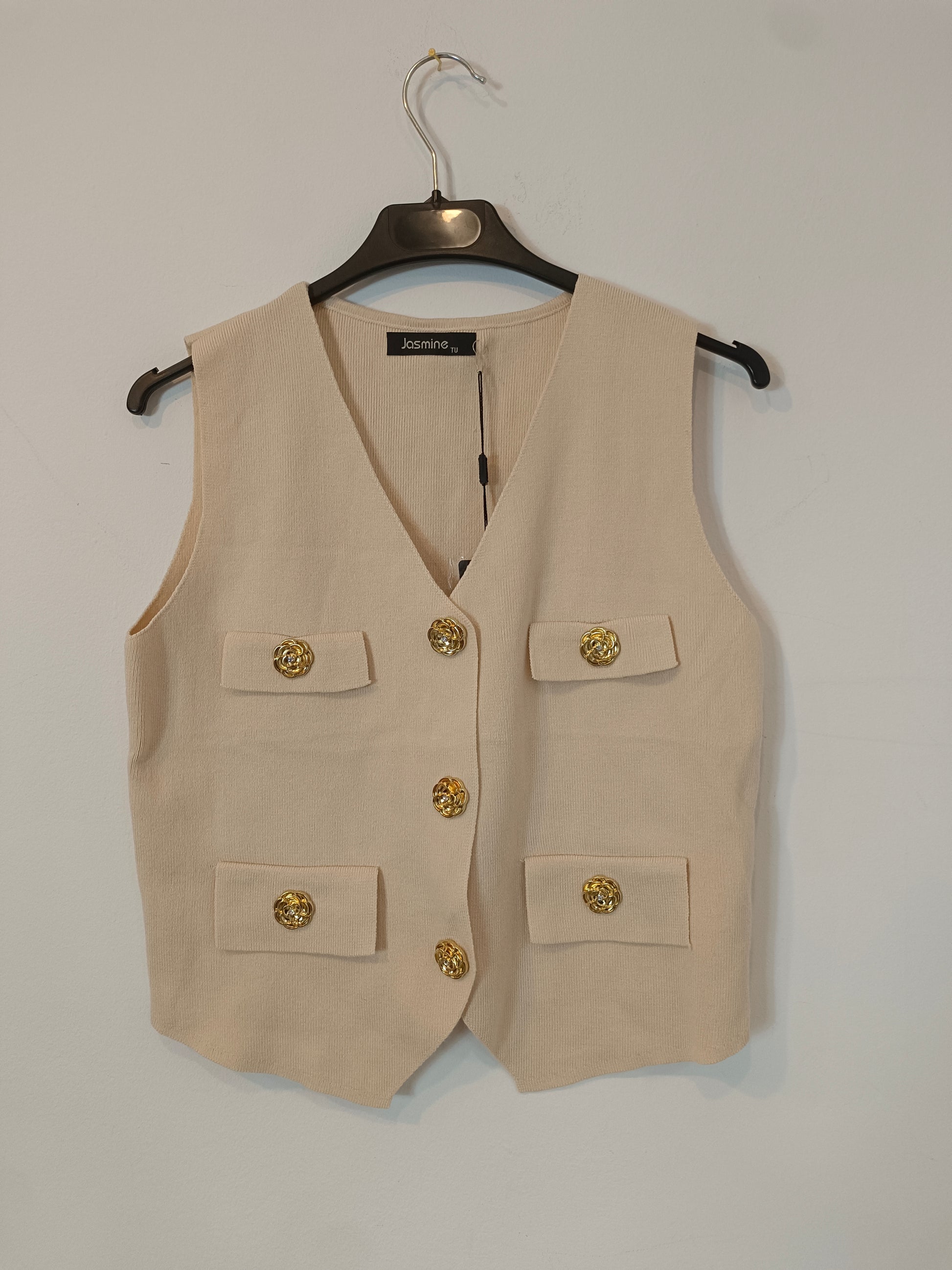 NUEVO CON ETIQUETA. Chaleco/top beige con detalle de botones dorados.