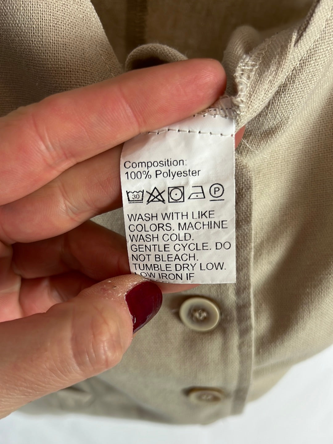 chaleco beige abotonado efecto lino . De sisa a sisa 43cm, largo 47cm