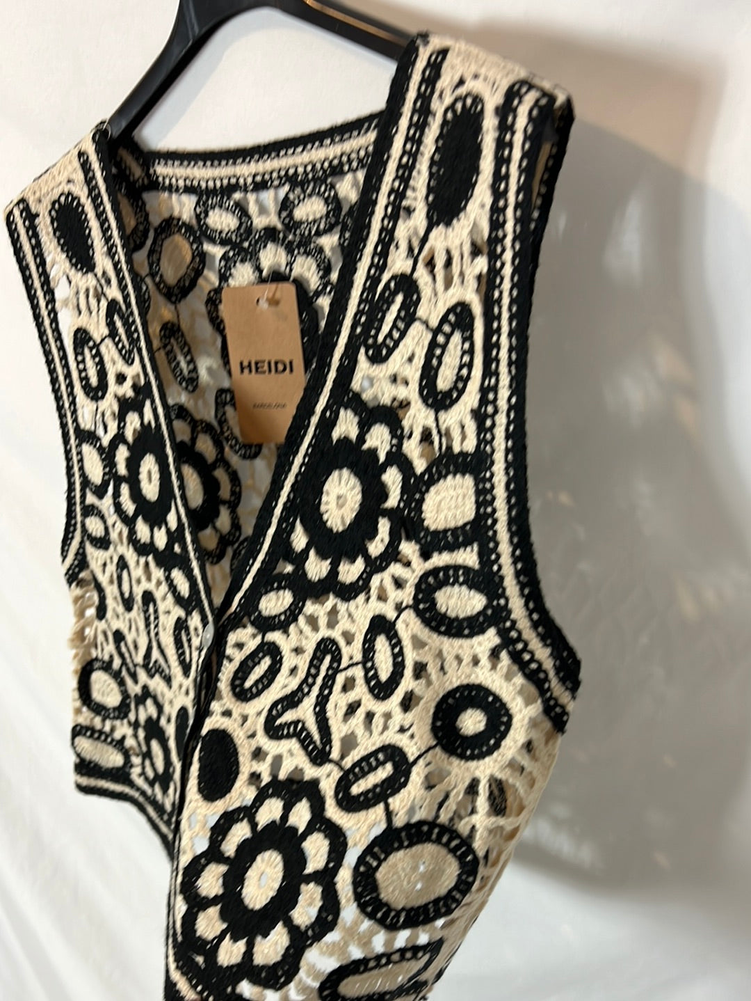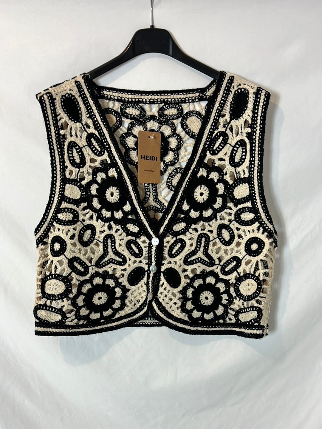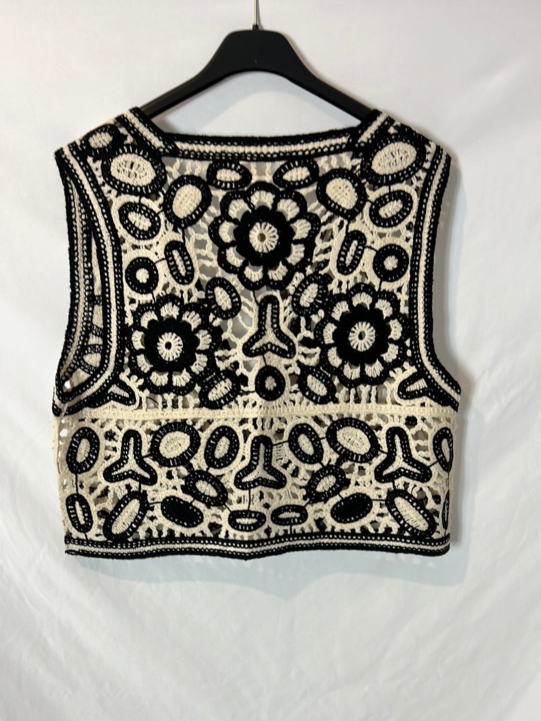 NUEVO CON ETIQUETA. Chaleco bicolor troquelado. Largo 43cm