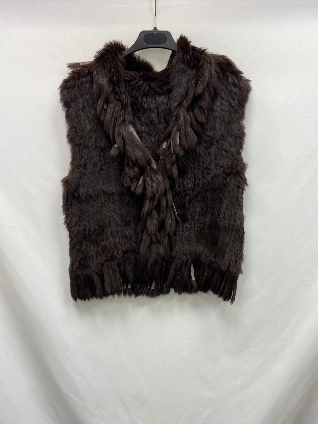 chaleco, pelo de Conejo, marrón oscuro. de sisa a sisa 50 cm largo 59 cm
