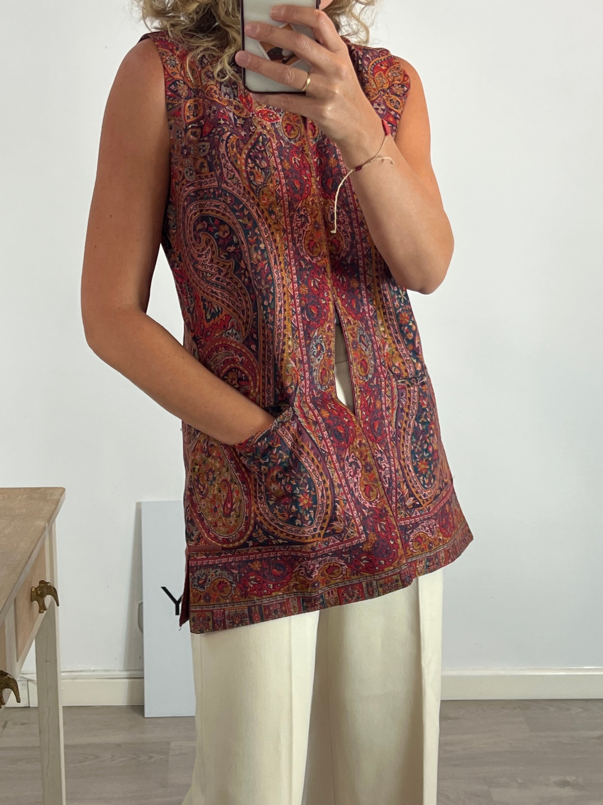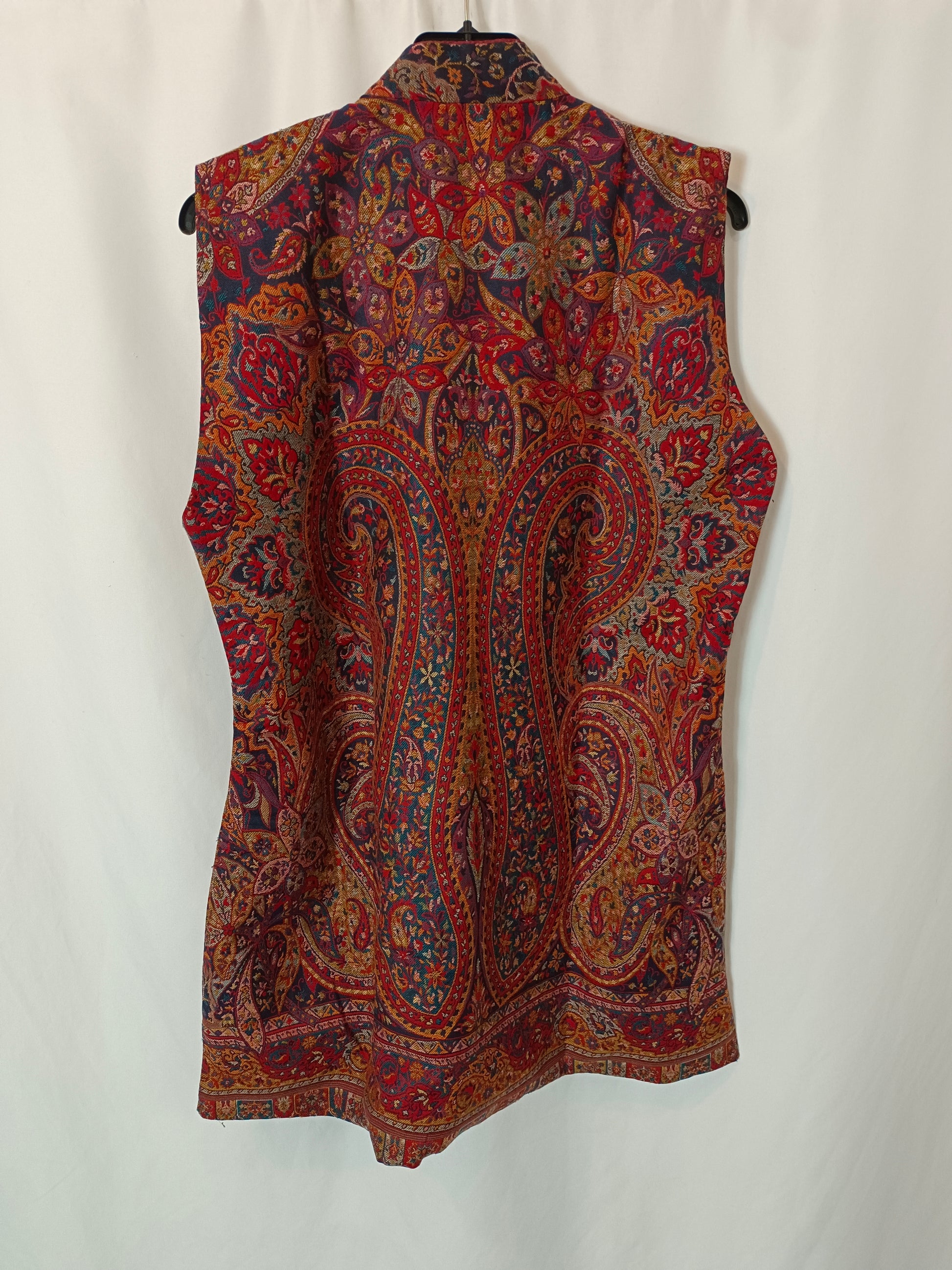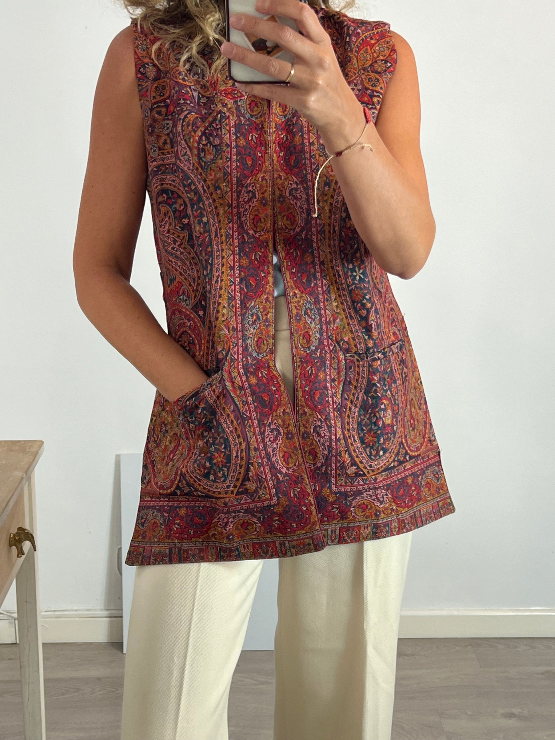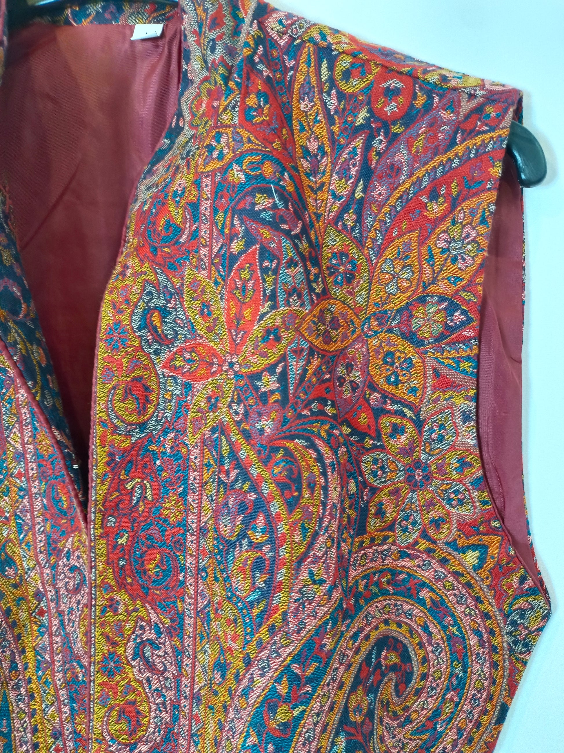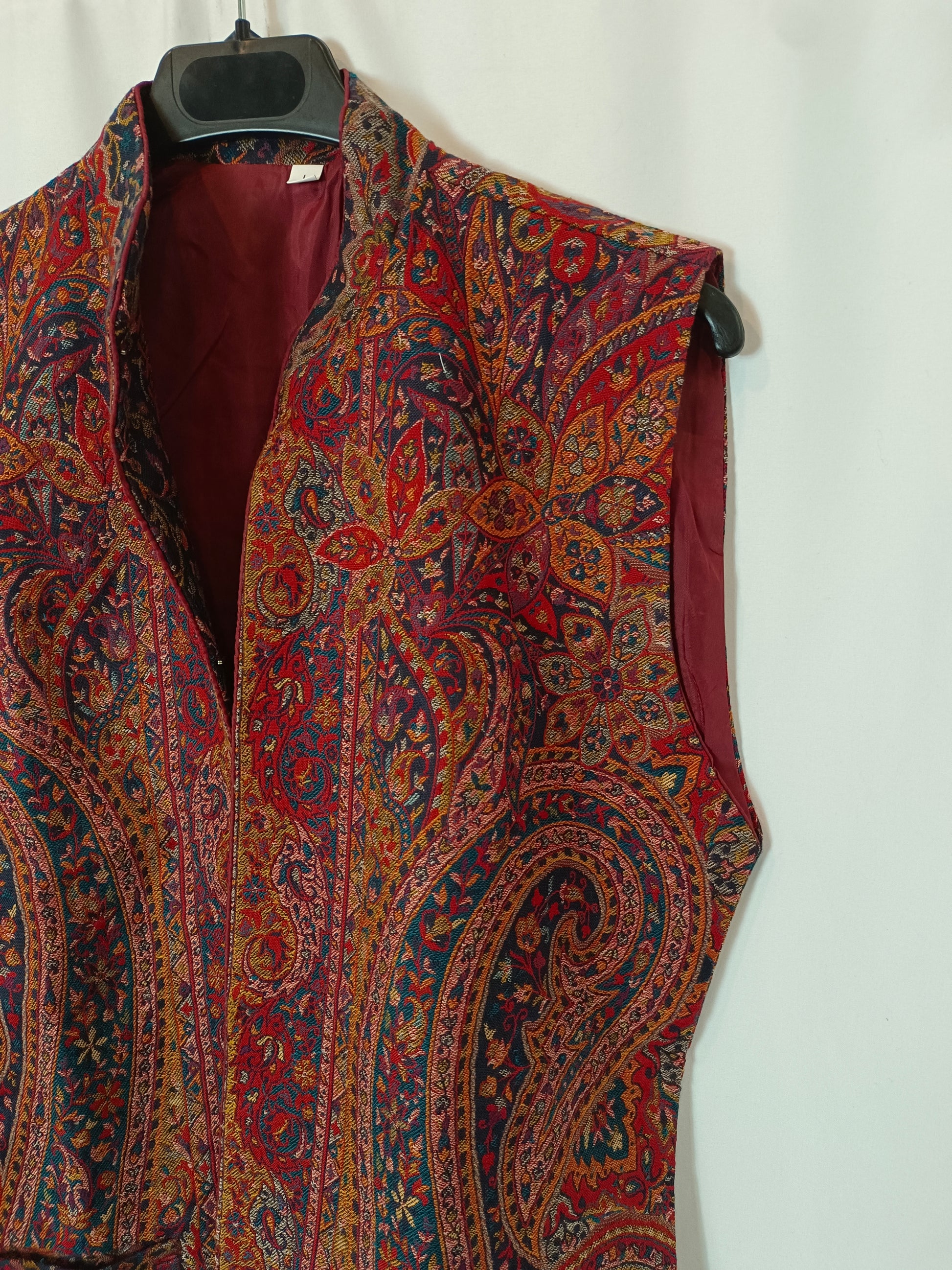 chalecos estampado tapiz en tonos burdeos