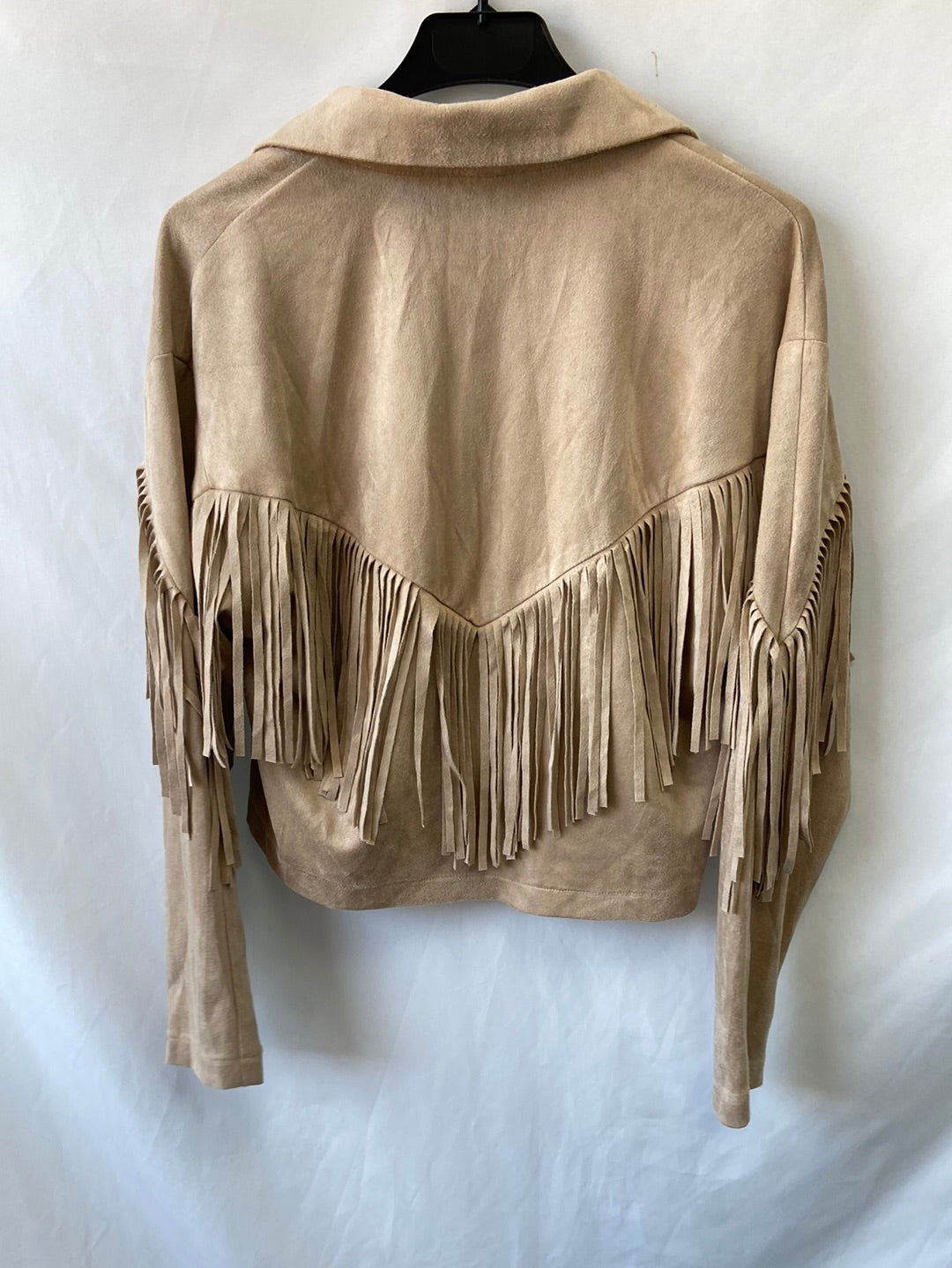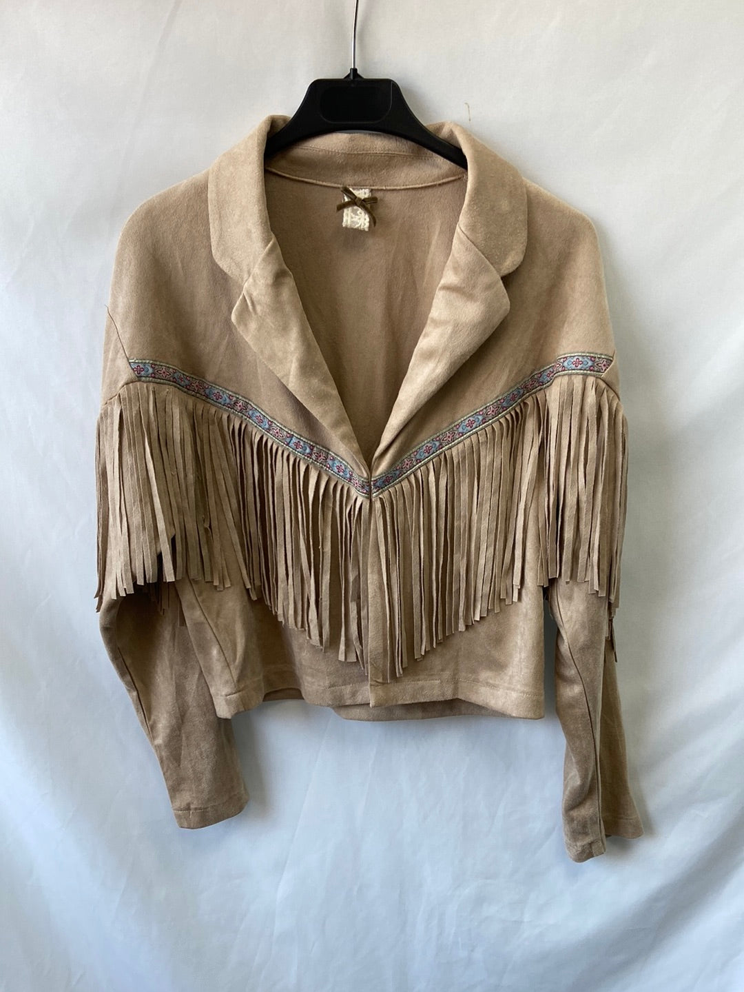 chaqueta cortita de antelina detalle flecos. Largo 52 cm .