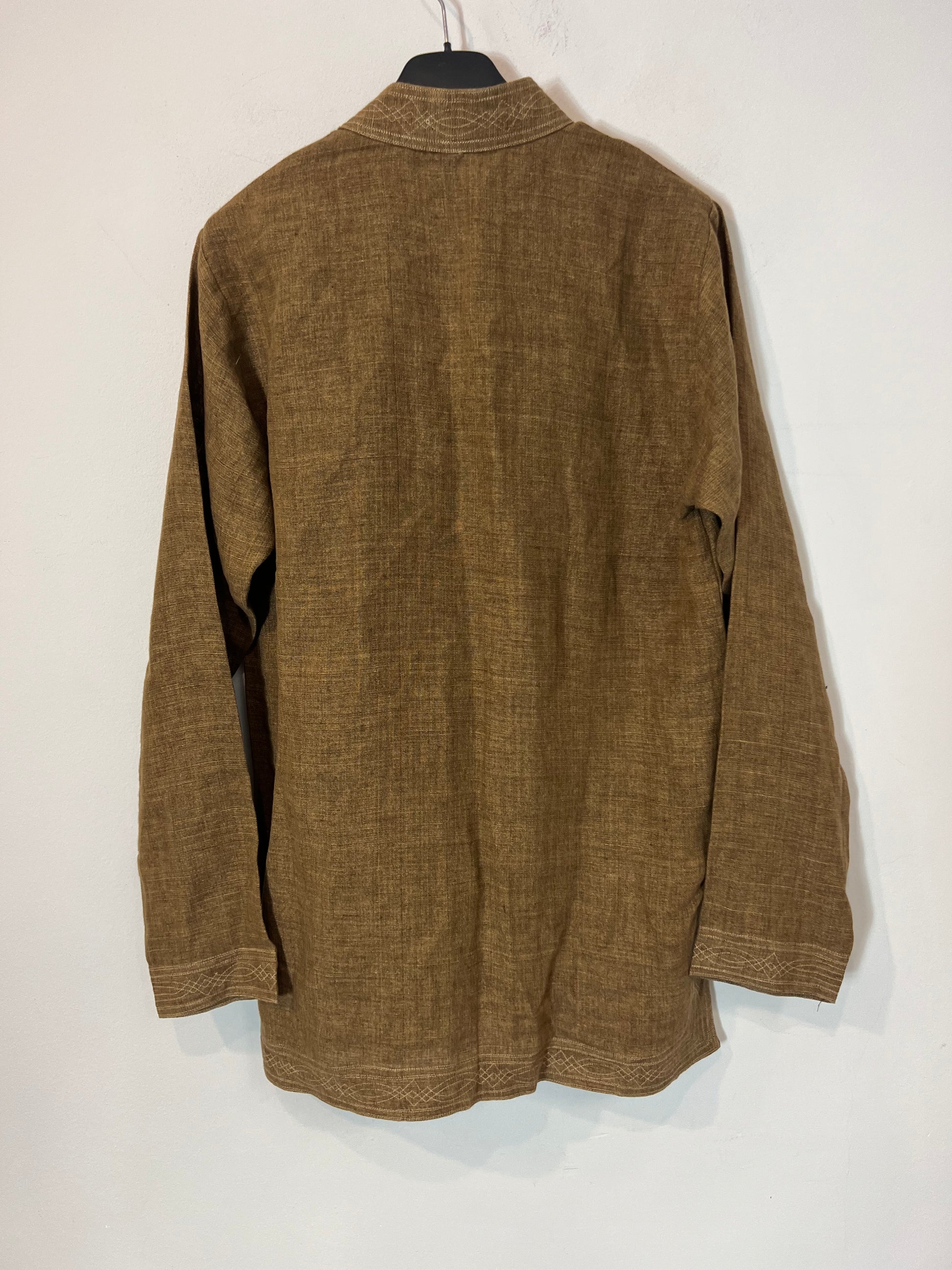 Chaqueta beige caqui (parece lino) con detalles bordados. De sisa a sisa 49 cm largo 78cm