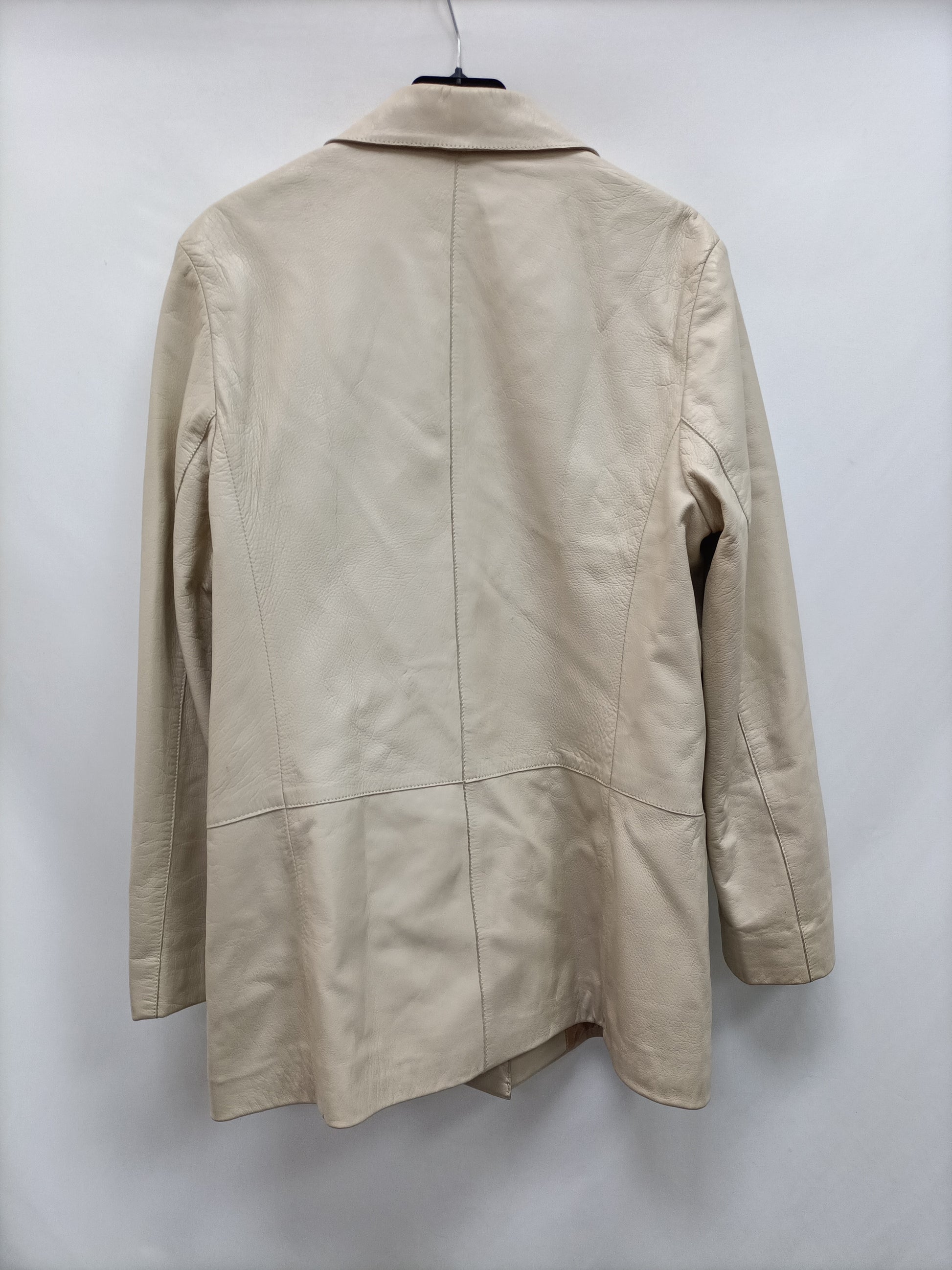 chaqueta beige de piel vintage. no elástica. de sisa a sisa 48 cm largo 76 cm. tara: algunas manchitas