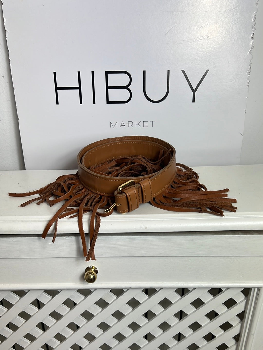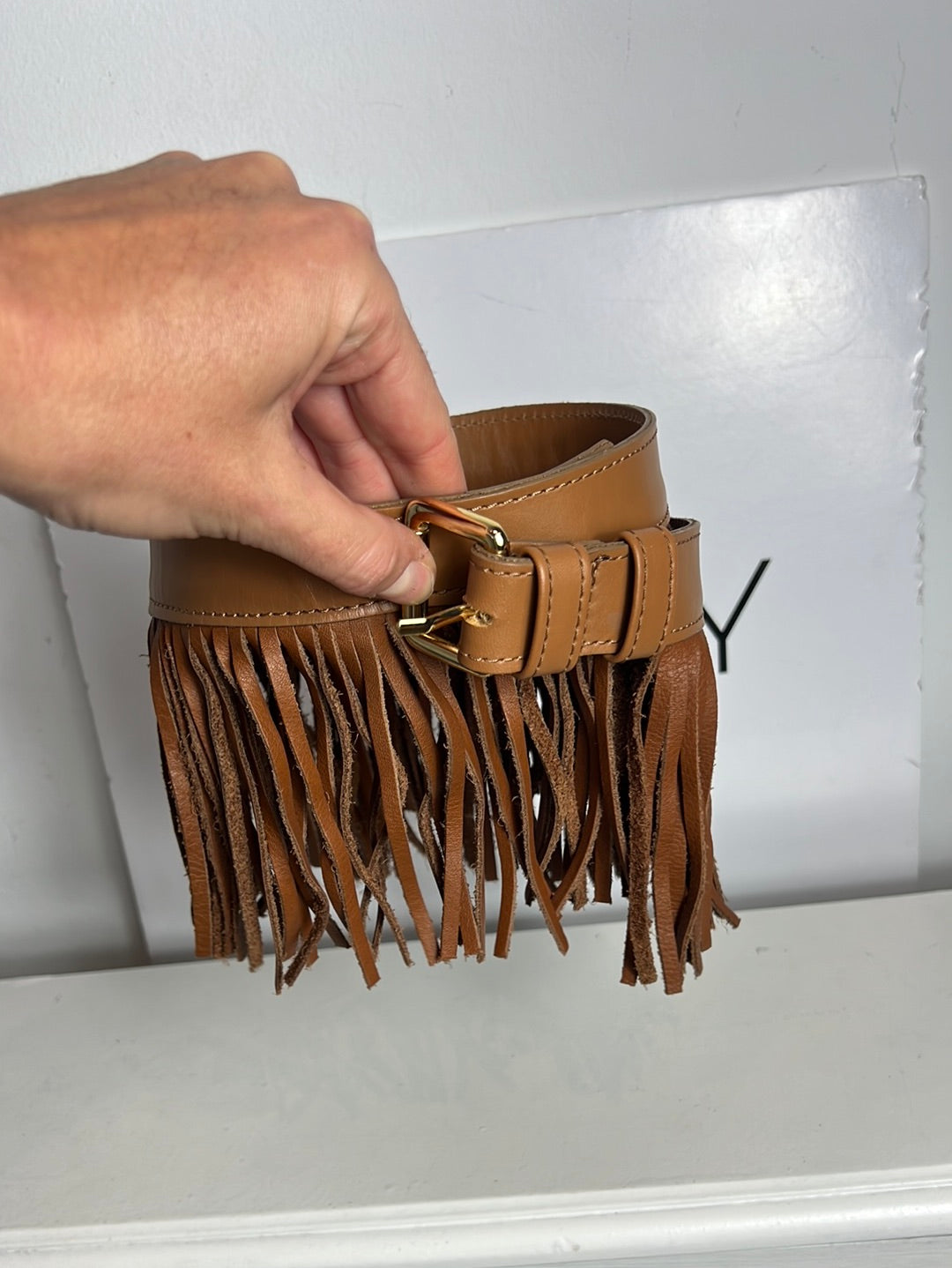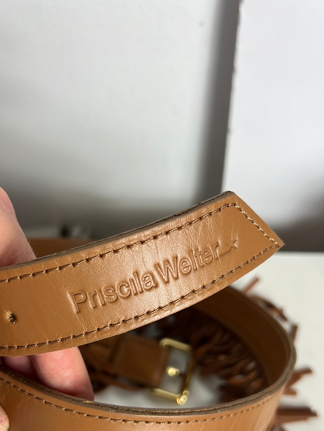 PRISCILA WELTER. Cinturón camel flecos. T 90