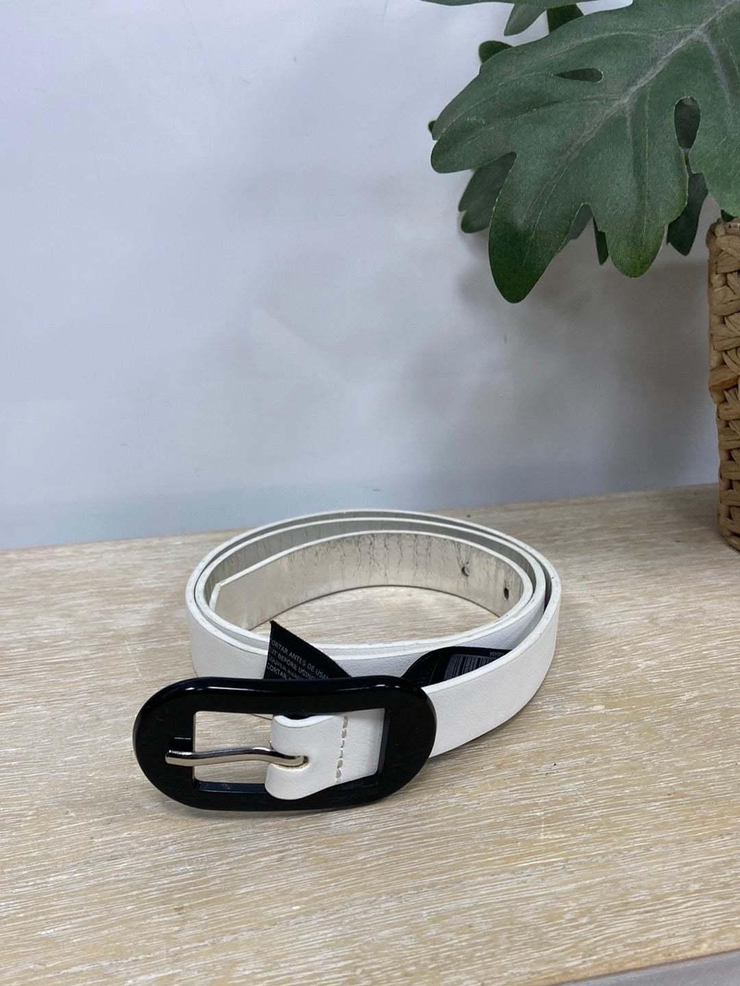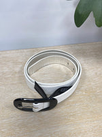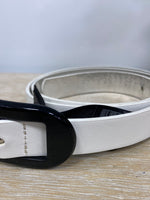 Cinturón blanco de polipiel con la hebilla negra. Largo 85 cm