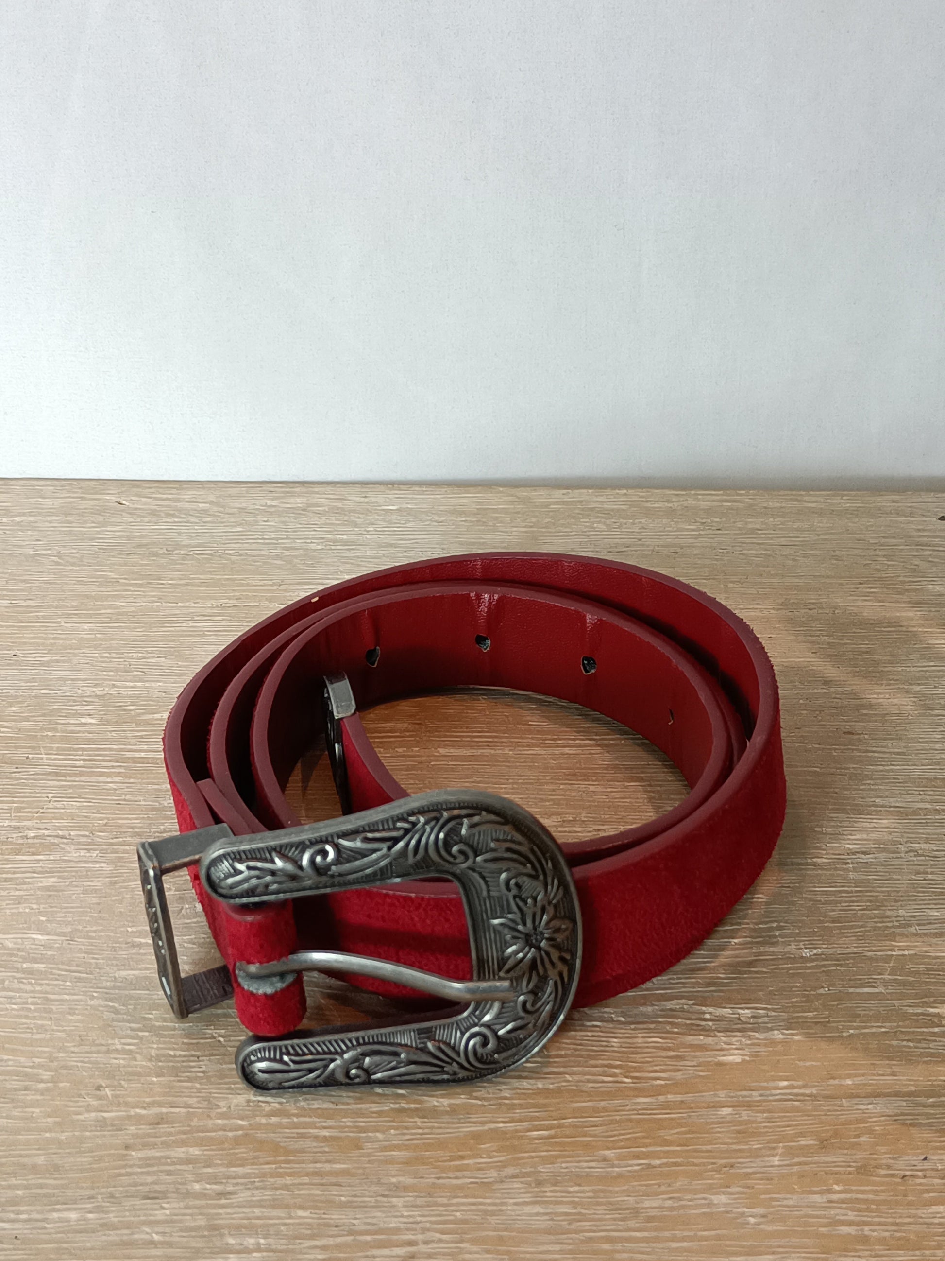 Cinturón rojo fino efecto piel