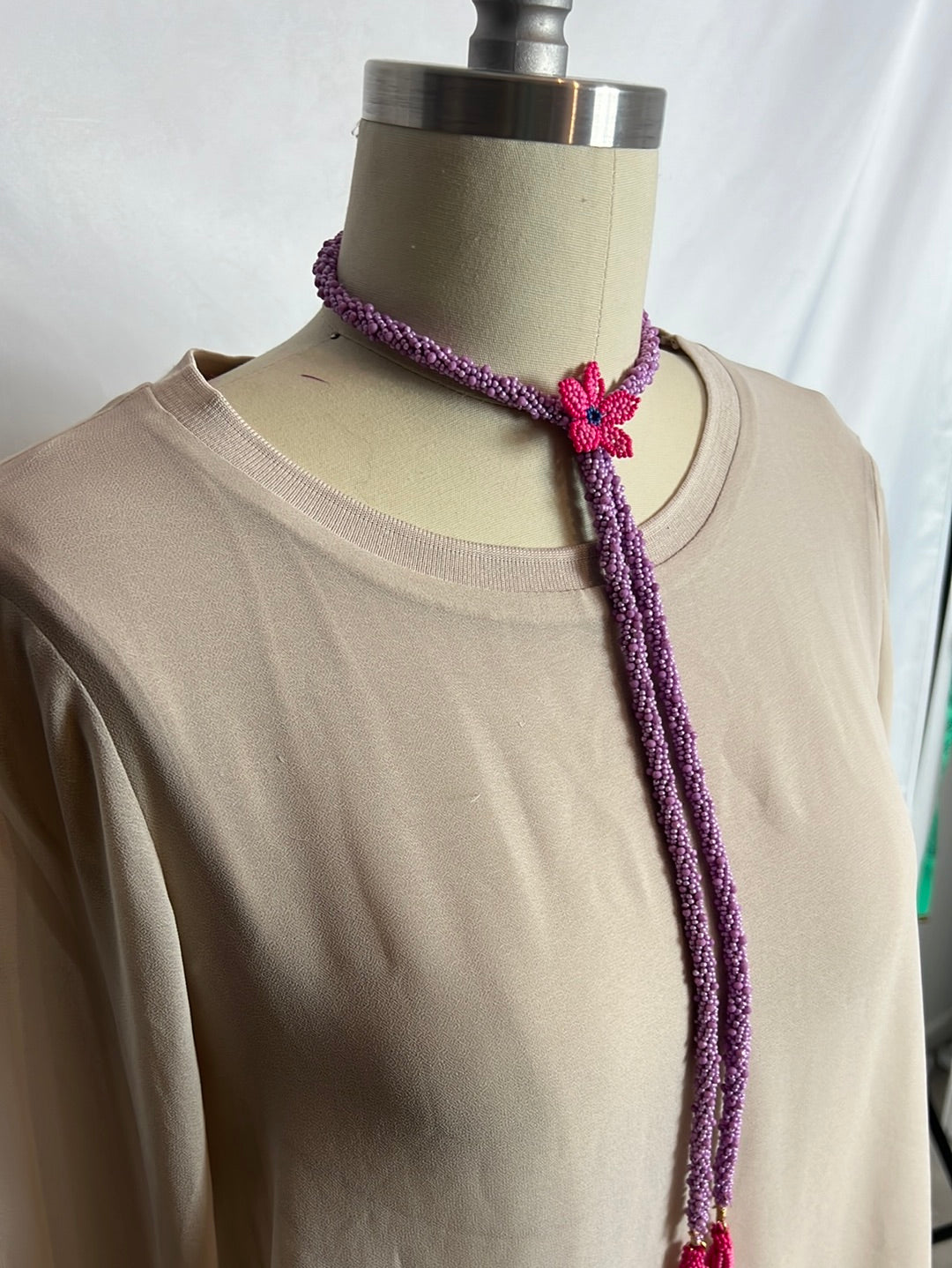 OTRAS. Collar estilo chocker cuentas moradas y rosas