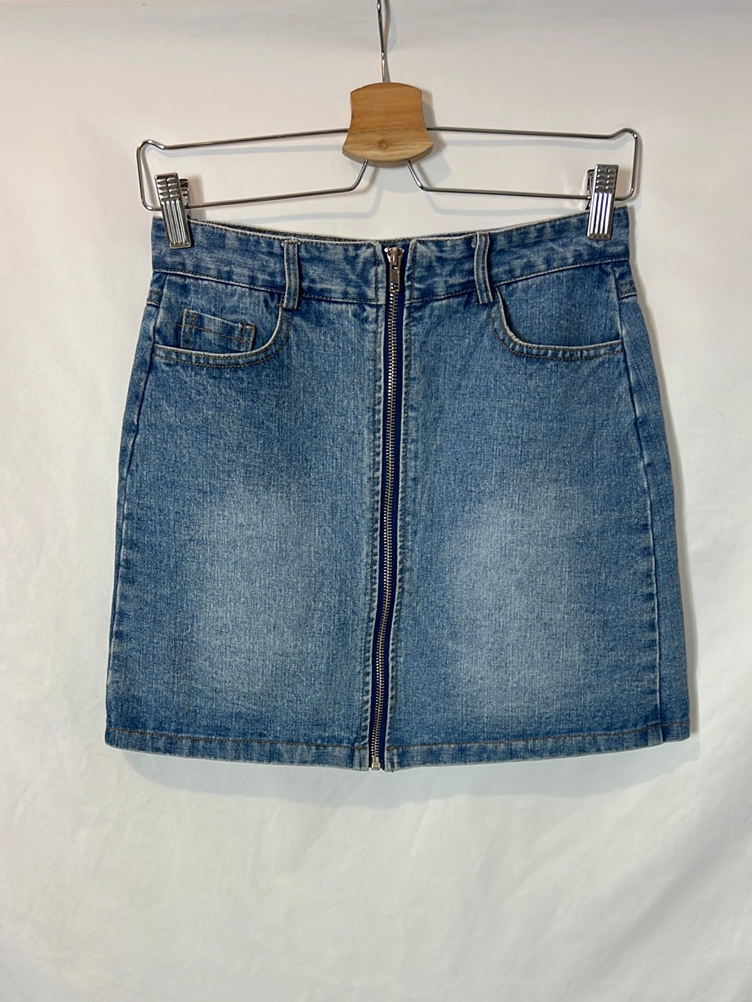 Falda corta cremallera no elástica. Cibtura 35cm, largo 39cm