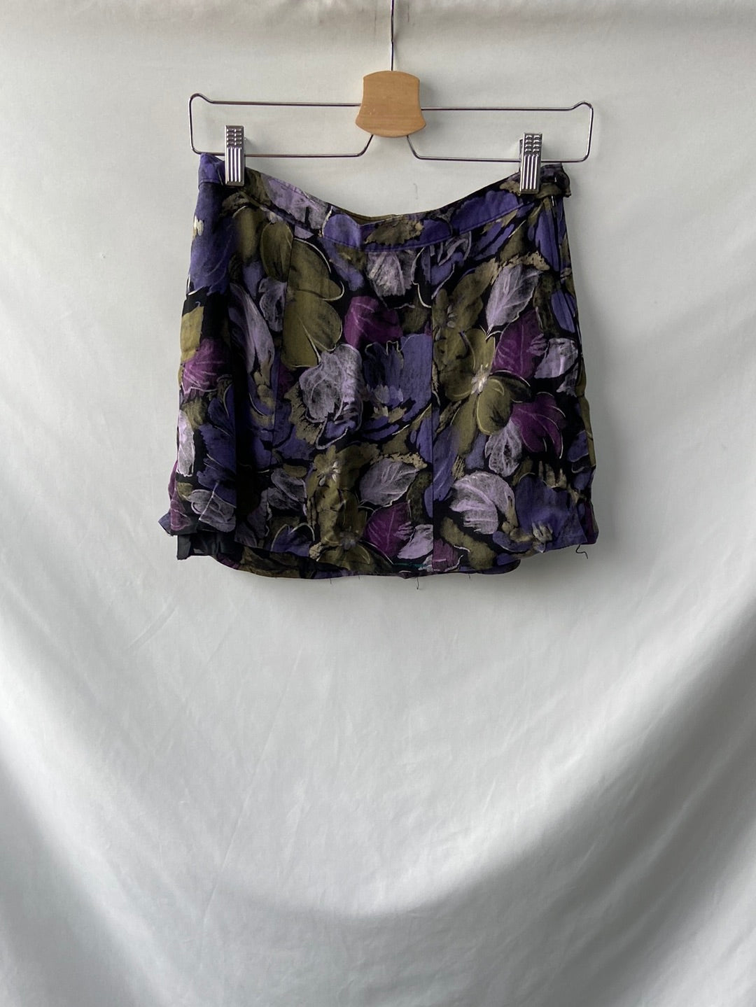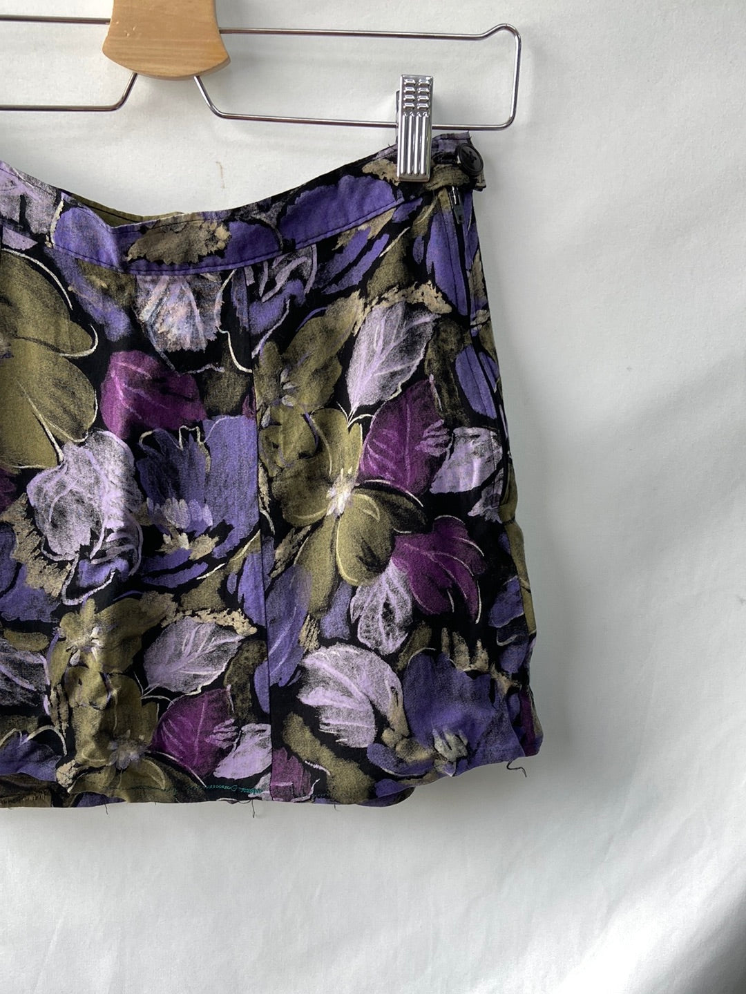 Falda corta estilo vintage en tonos morados. cintura 36 cm largo 33 cm