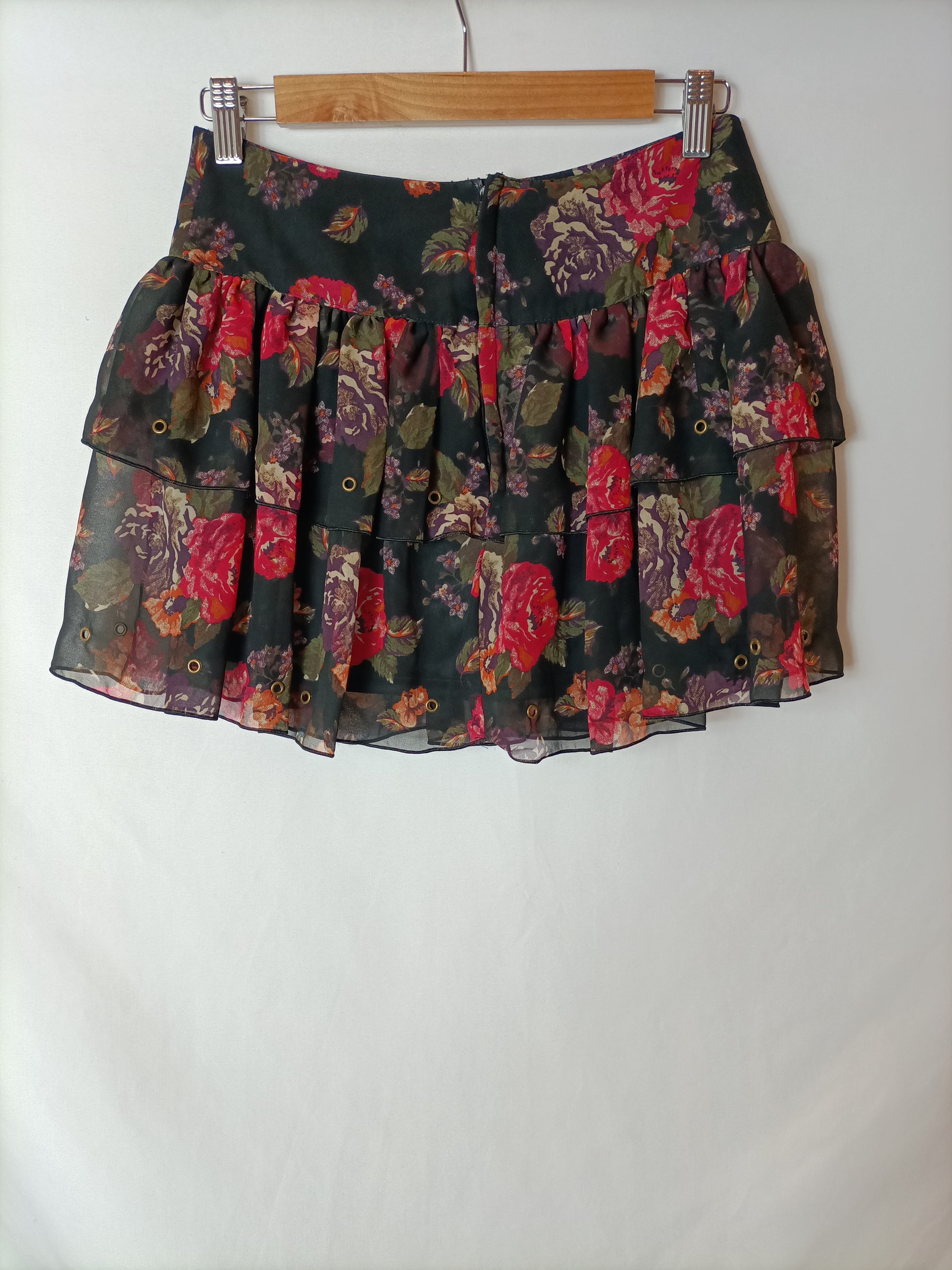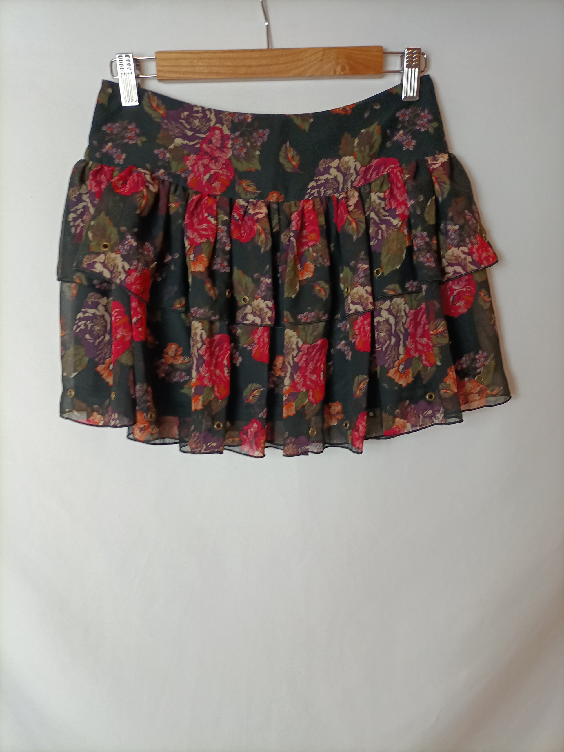falda corta con volantes y flores. cintura 34 cm largo 34 cm