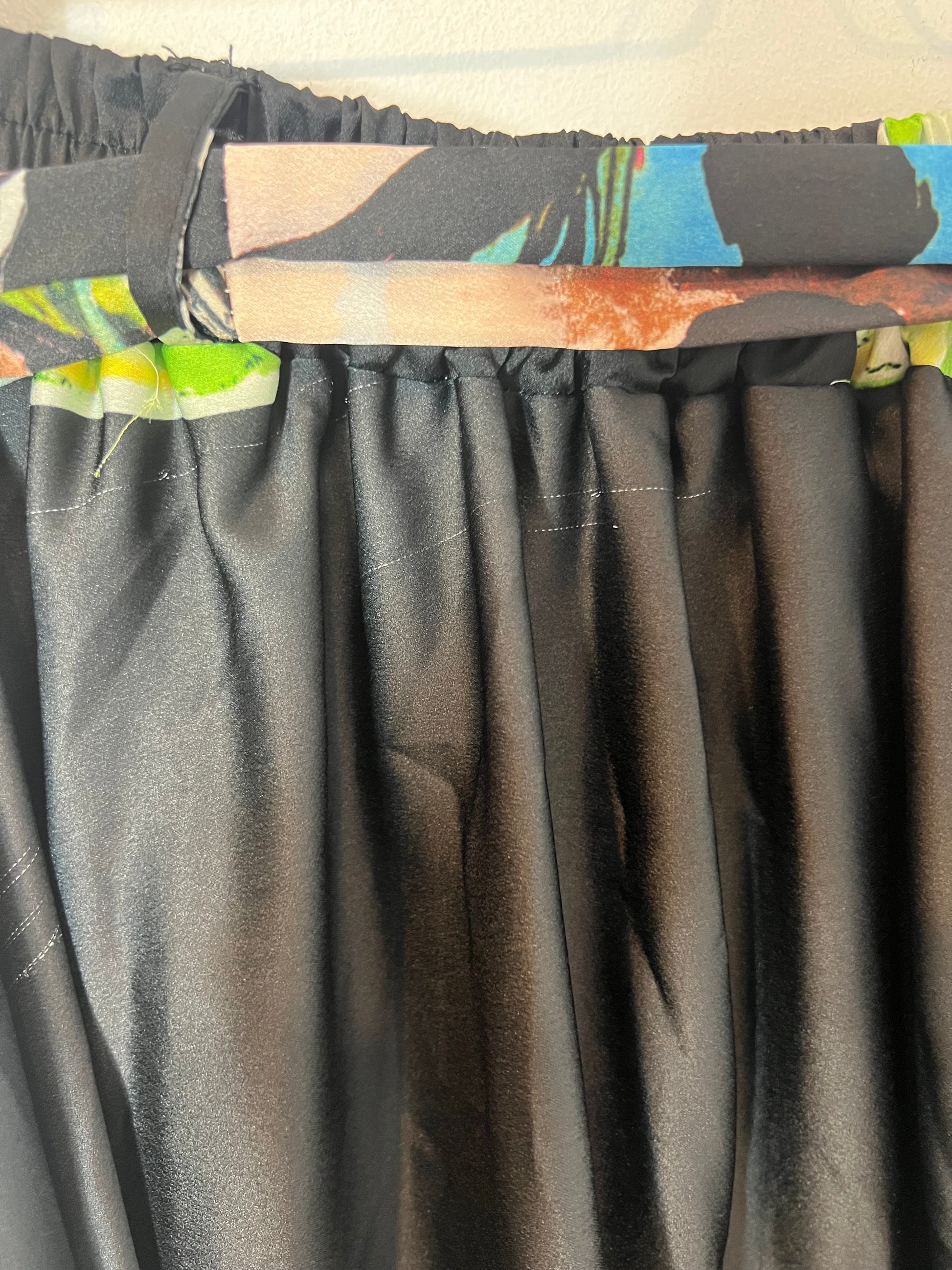 NUEVO CON ETIQUETA. Falda larga fluida estampado caras .Cintura 38 cm semi elástica Largo 104 cm. Tara: marca hilo parte frontal poco visible (foto)