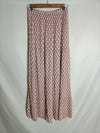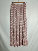 Falda rosa larga/midi con estampado en blanco. Cintura elástica.