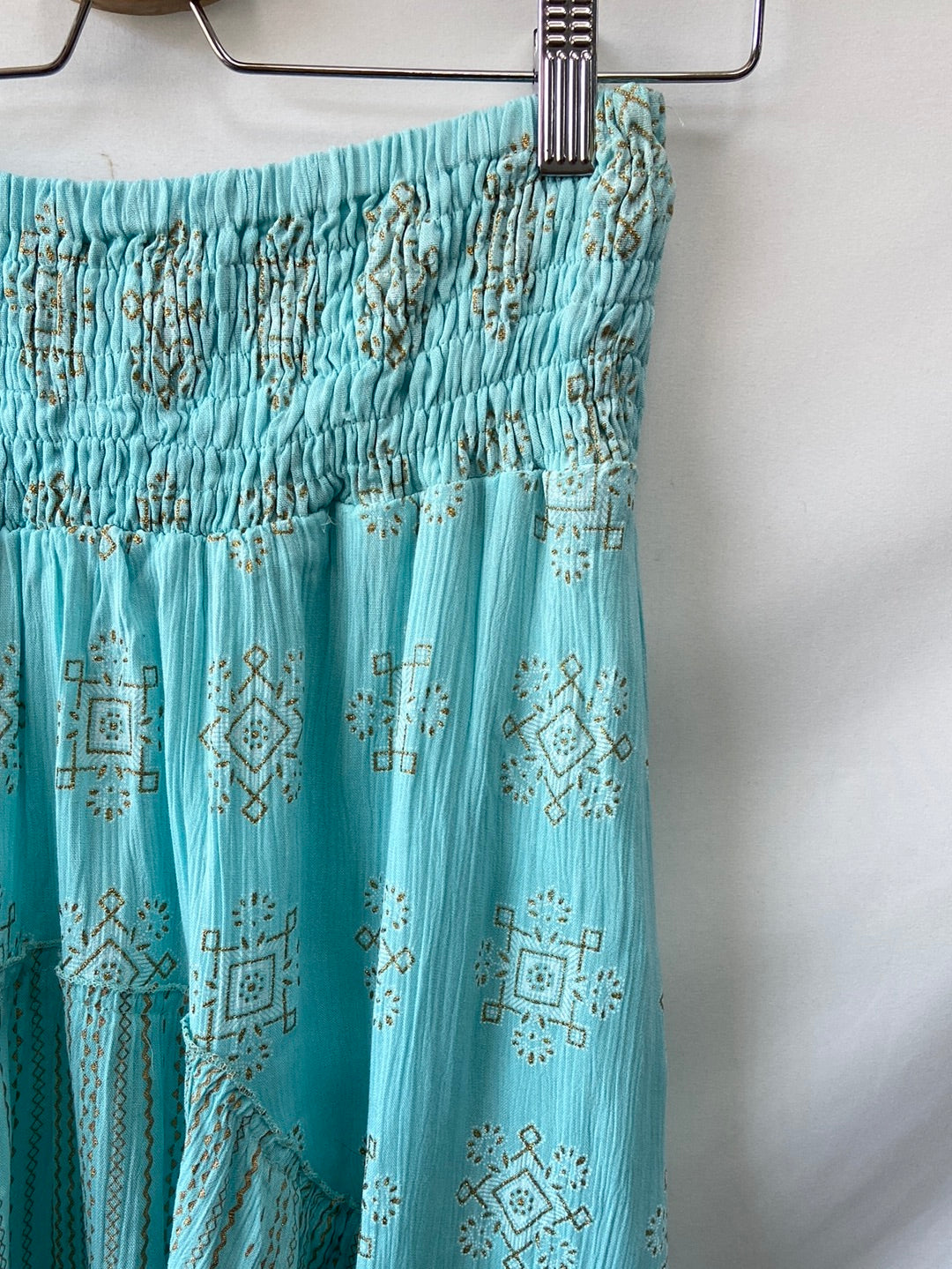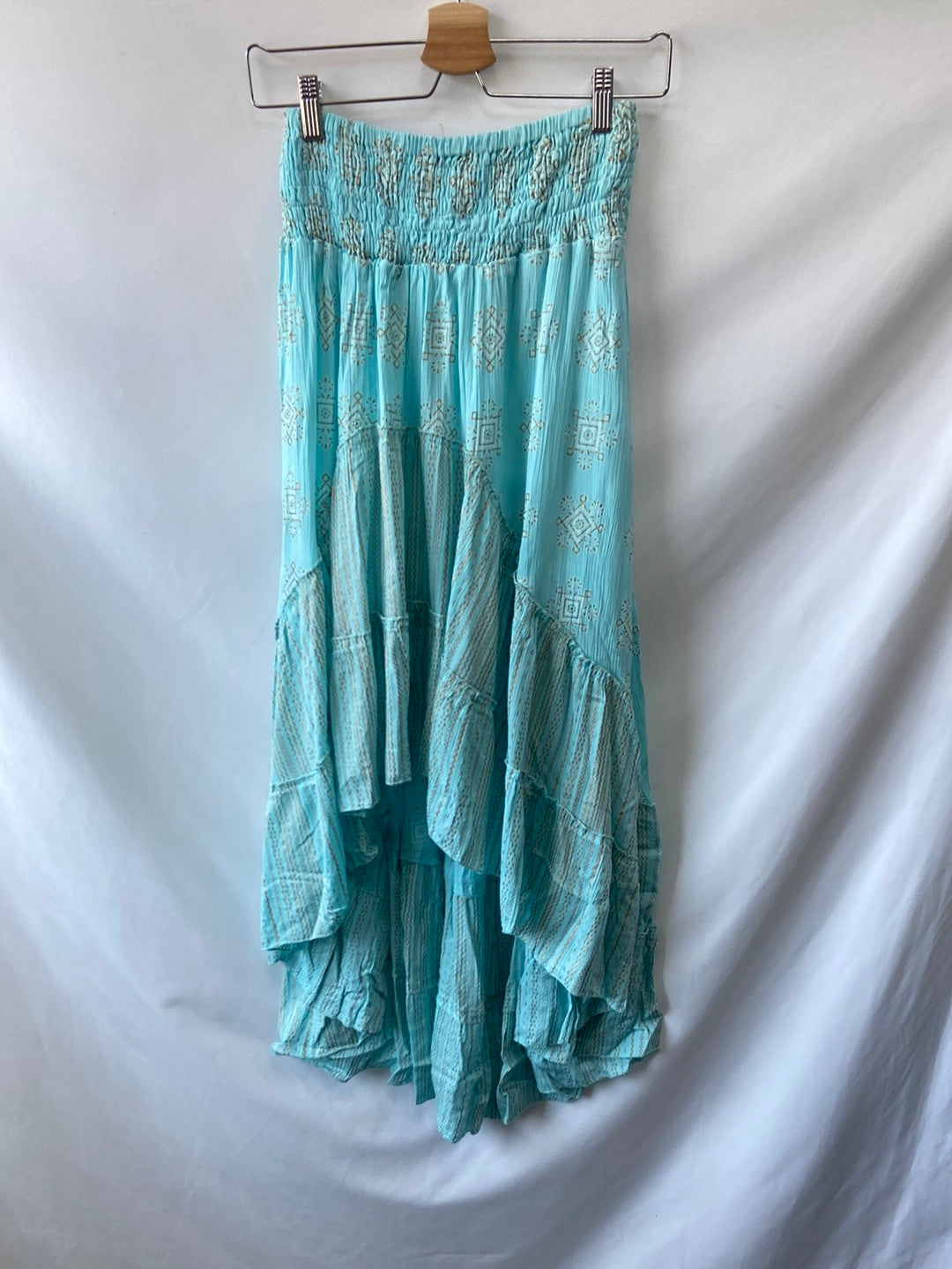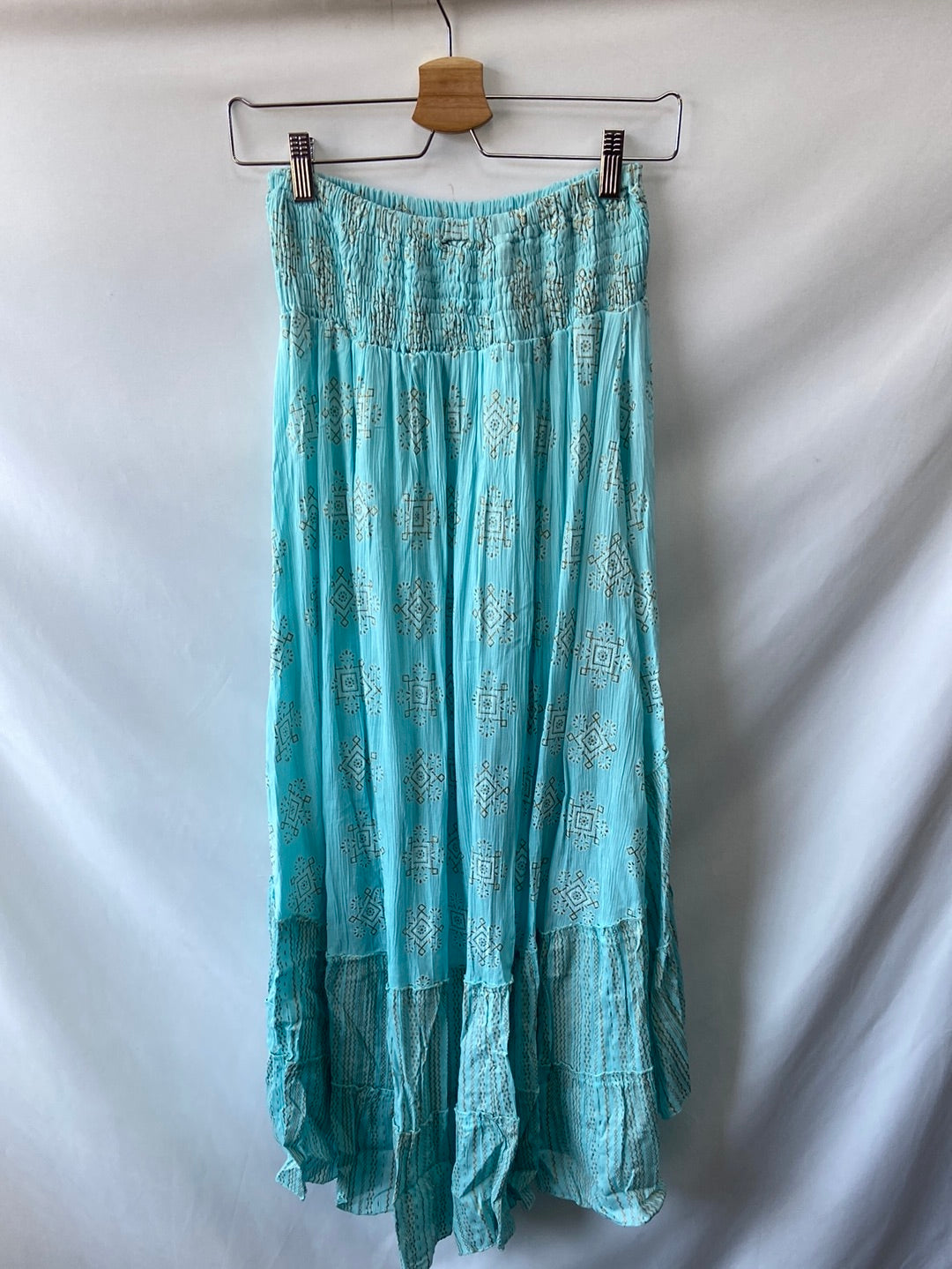 Falda turquesa y dorada largo asimétrico. Cintura elástica .